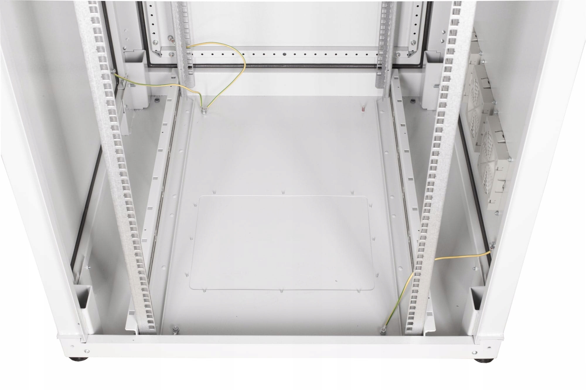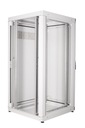 Szafa do montażu samodzielnego. Zestaw składa się z podstawy, dachu, słupków zewnętrznych, ścian bocznych, drzwi oraz osłon, elementów montażowych, 4-ech szyn rack, instrukcji montażu. Po poprawnym złożeniu klasa ochrony IP 55. Wszystkie potrzebne uszczelki znajdują się w zestawie.