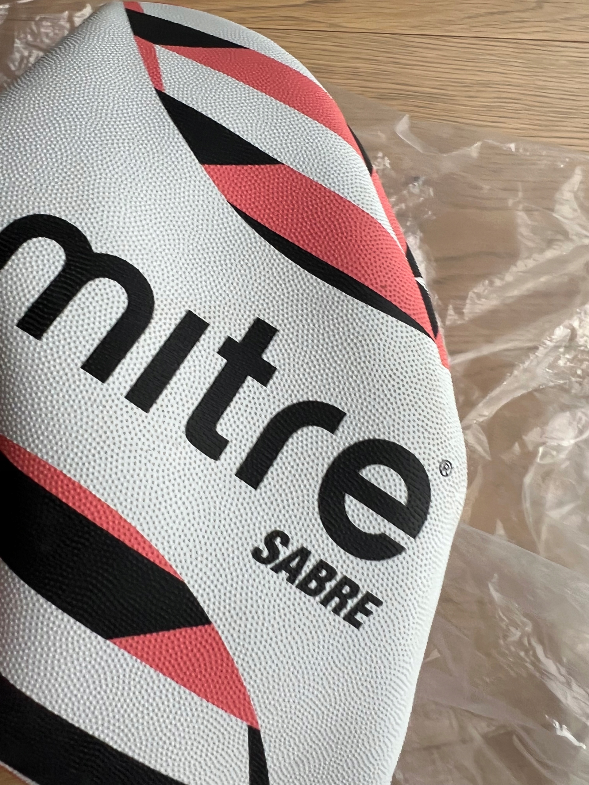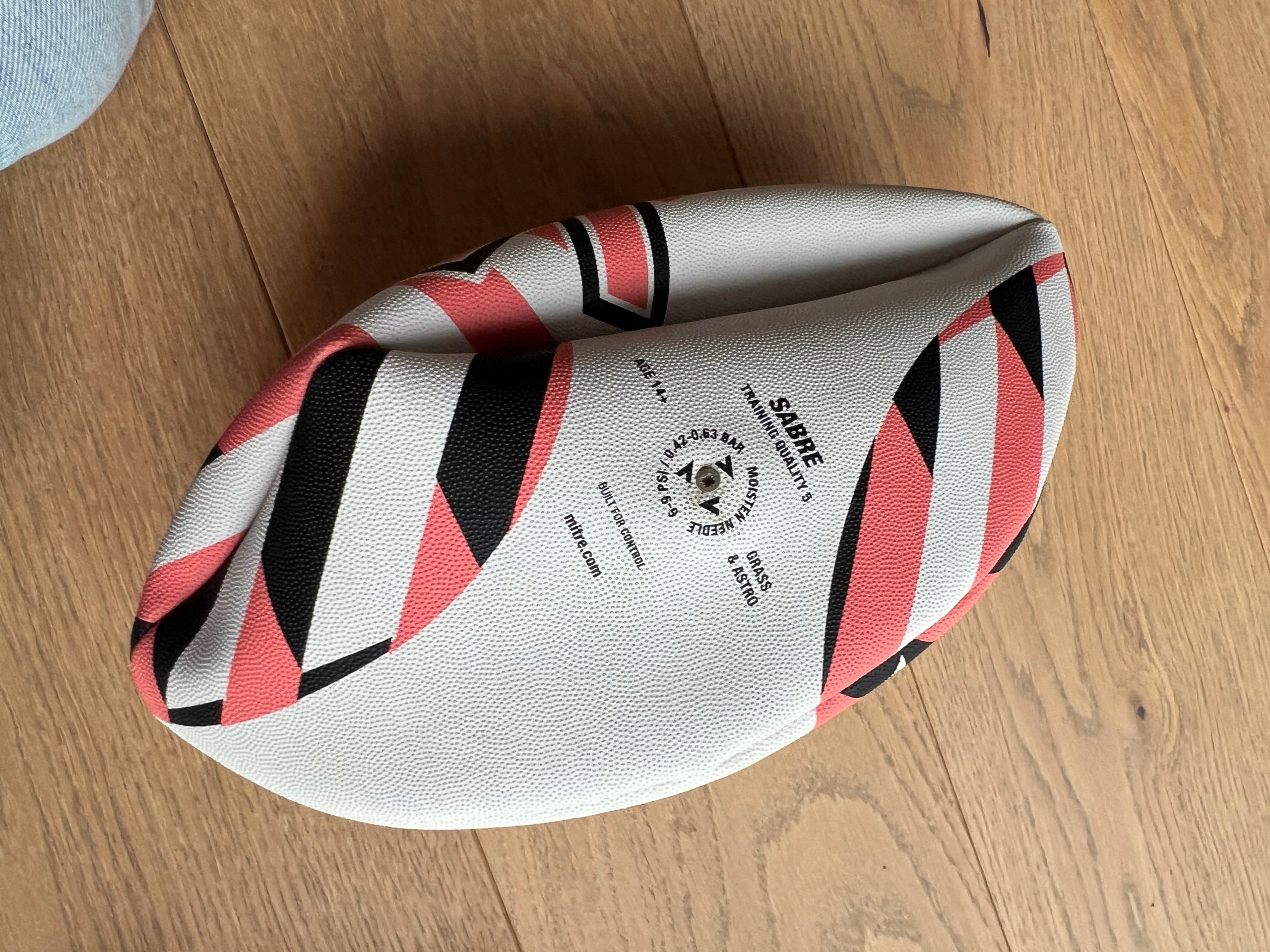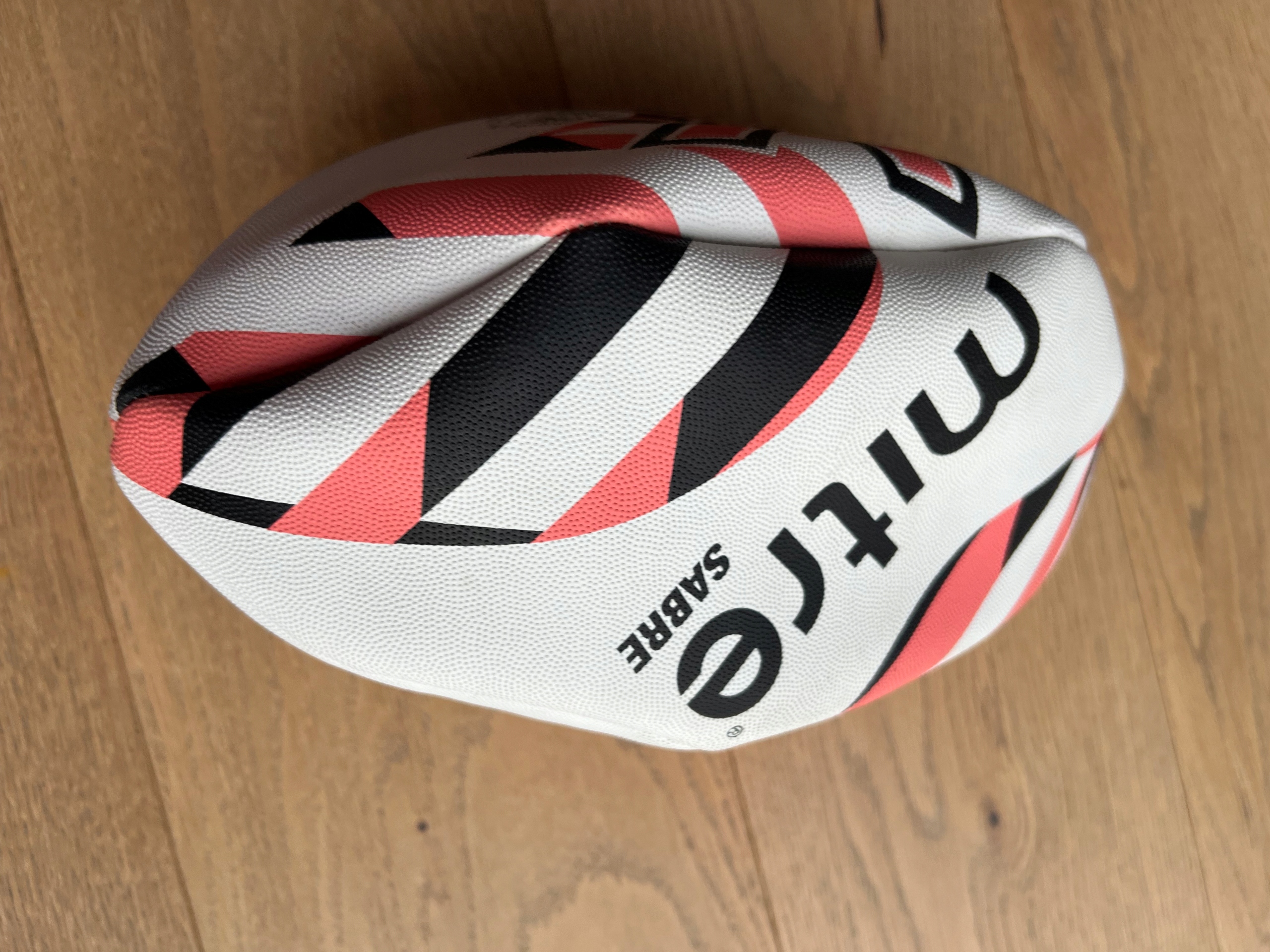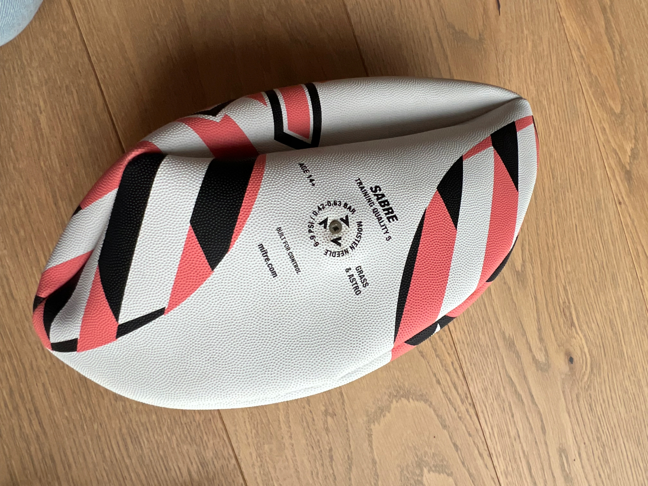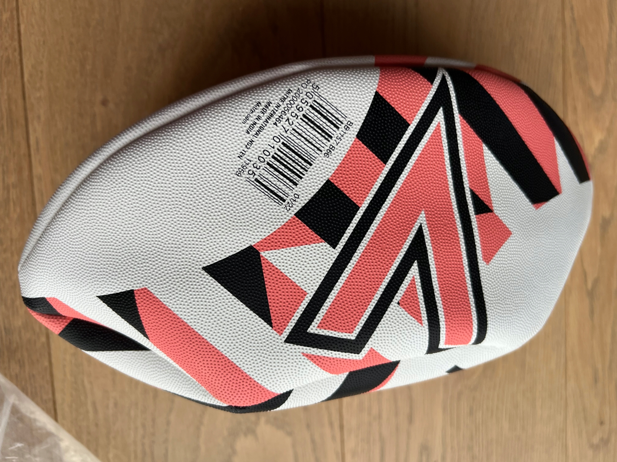 Piłka do treningu rugby z grafiką o dużym oddziaływaniu.