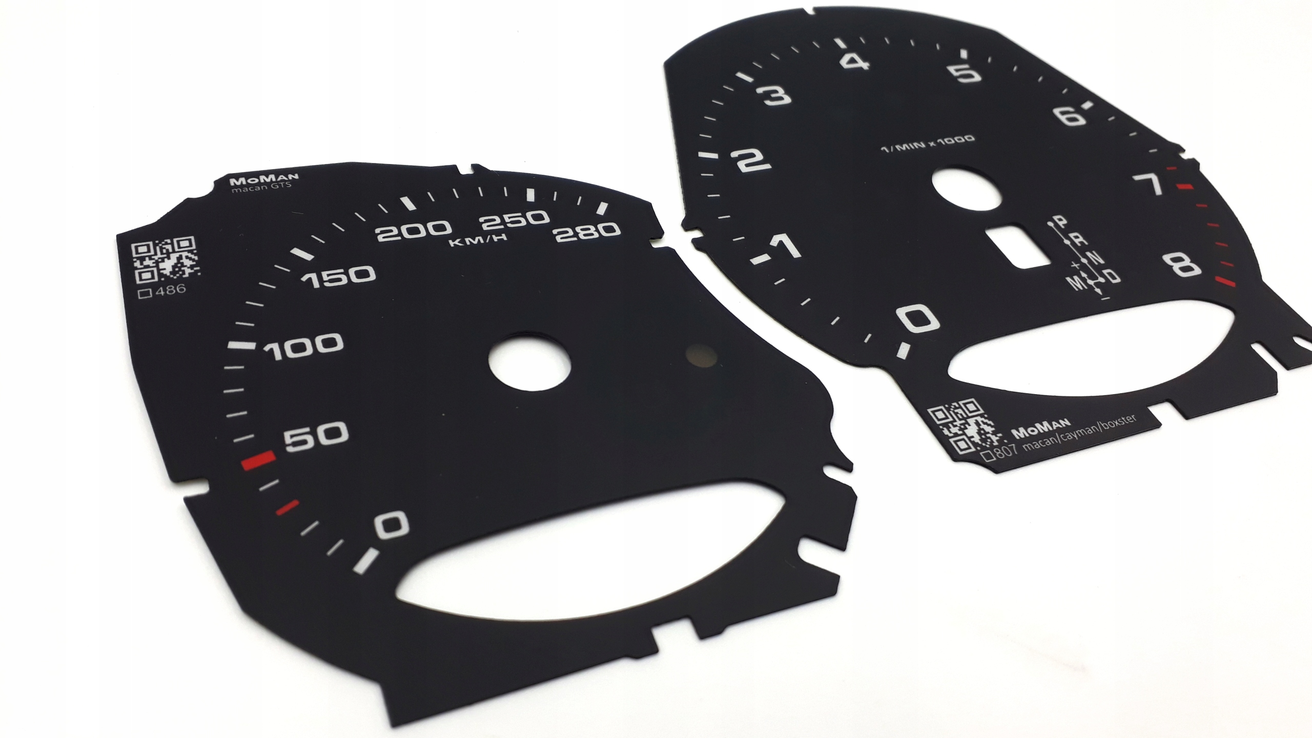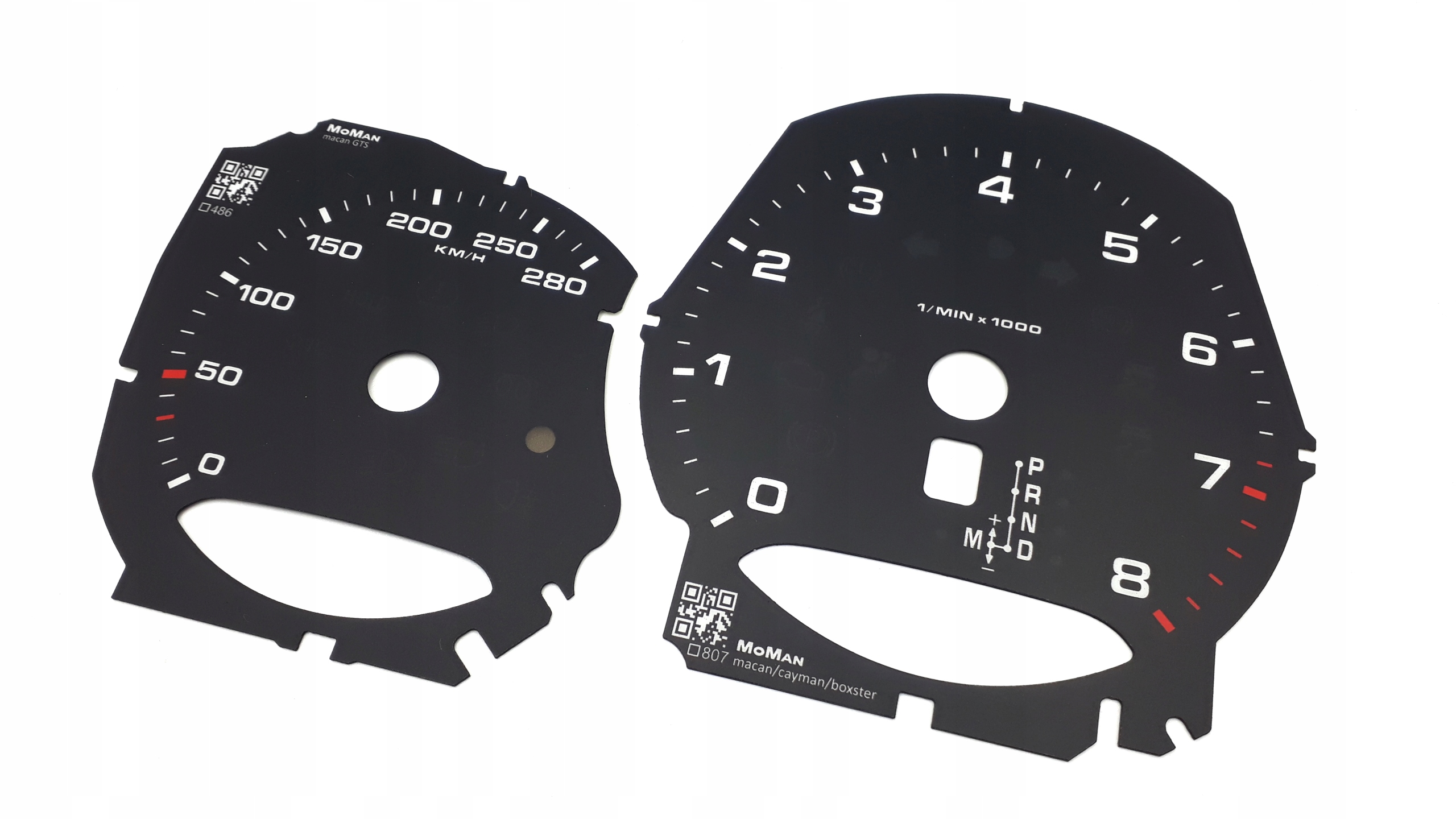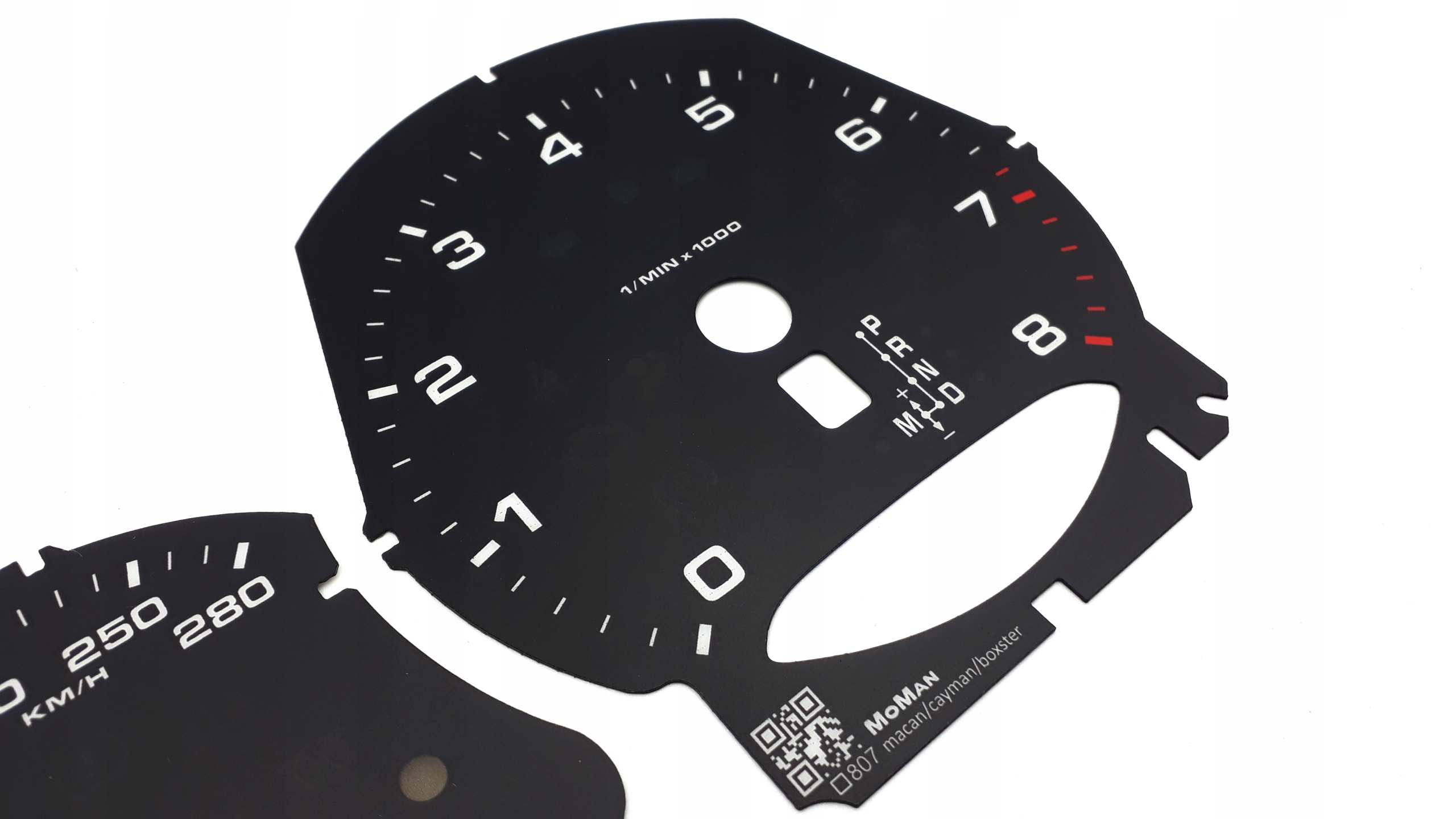 Prezentowane tarcze licznika to doskonałe połączenie wyrafinowanego wzornictwa z najwyższą użytecznością. Zostały precyzyjnie dopasowane do fabrycznych podświetleń i wskaźników, dzięki czemu zachowują spójny wygląd z pozostałymi elementami wnętrza Twojego Porsche Macan.