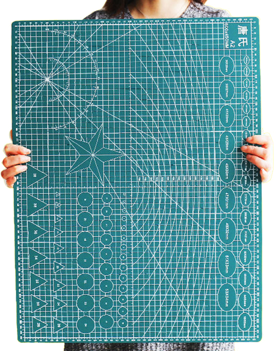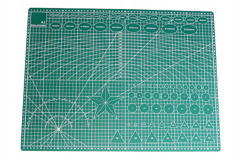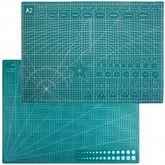 После разреза он все еще остается гладким. С обеих сторон у него есть слой, на котором была напечатана сантиметровая градация по вертикали и горизонтали, отмечены углы, транспортиры, параллельные линии и фигуры.