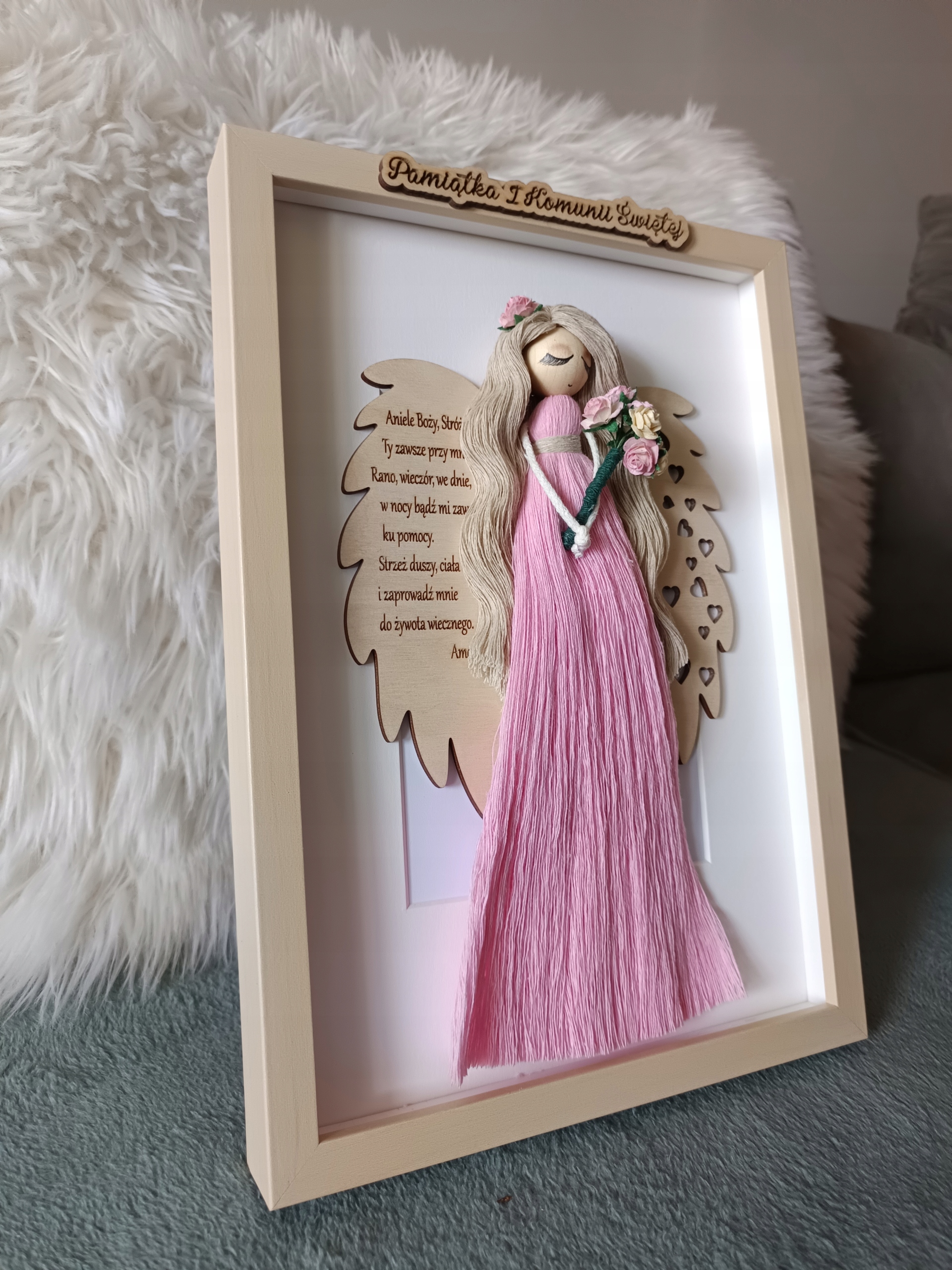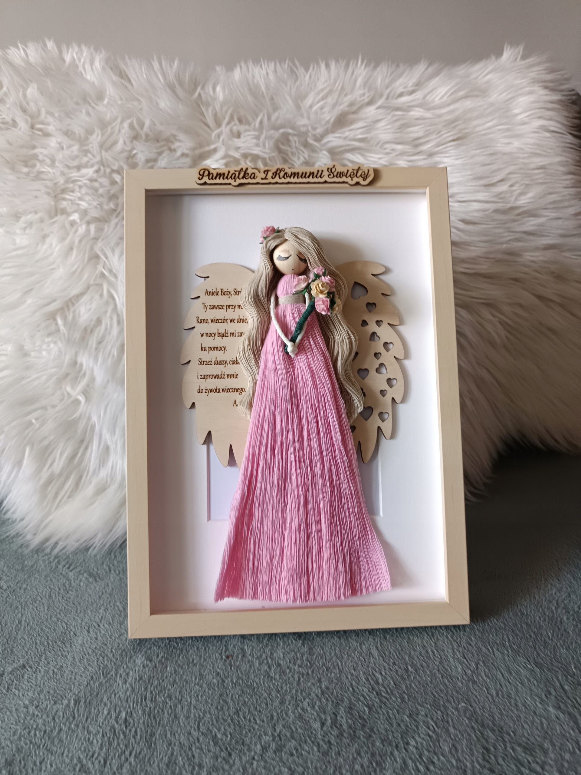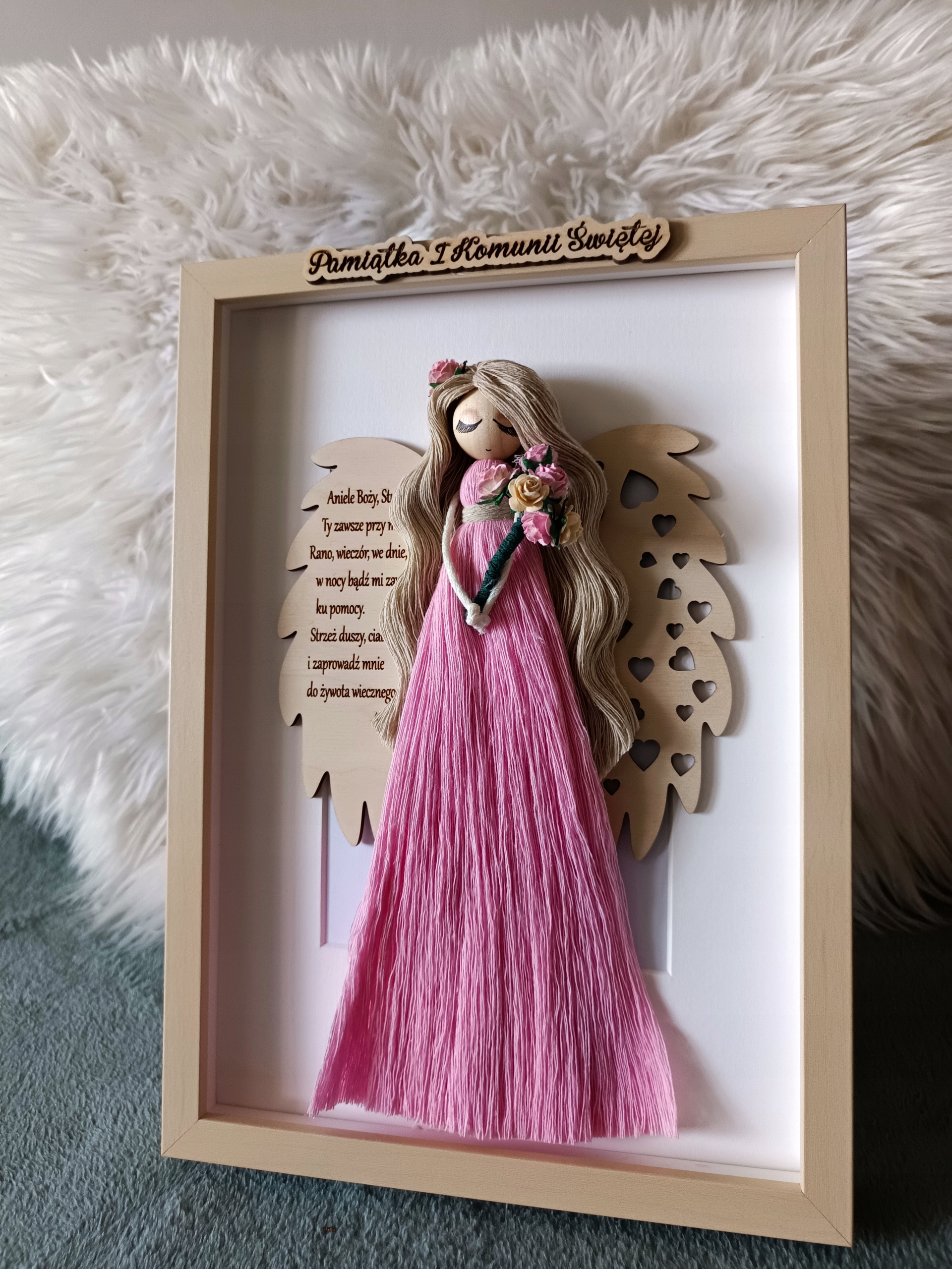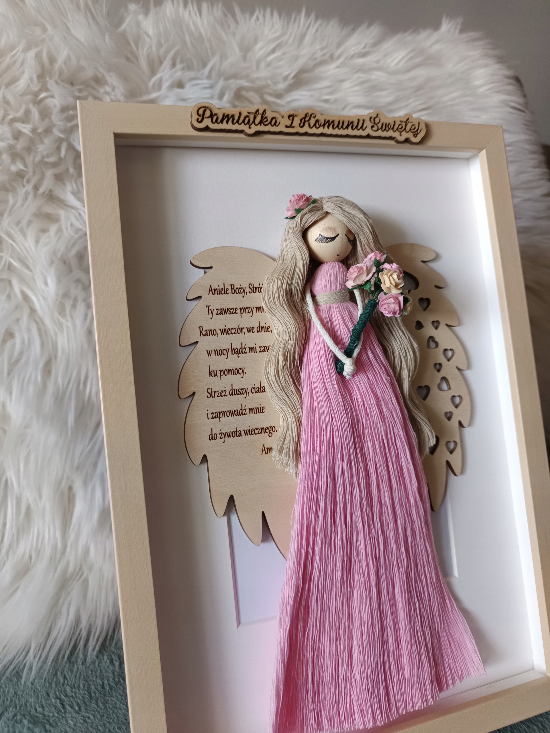✨anioł może być podarunkiem na I Komunię Świętą, Chrzest Święty.Na skrzydle modlitwa Aniele Boży......