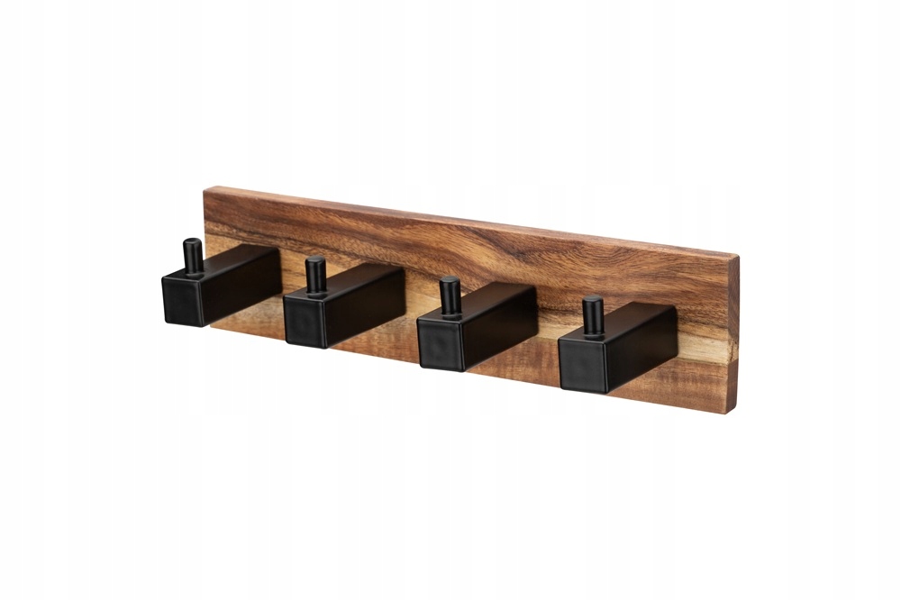 Wieszak AKAMO to połączenie naturalnego drewna akacjowego z czarną, malowaną proszkowo stalą, które doda stylu każdemu wnętrzu.