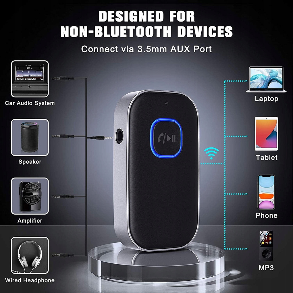 Odbiornik bezprzewodowy Bluetooth w standardzie 5.0 i wyjściem AUX to wielofunkcyjne urządzenie które da Ci komfort jazdy na jaki zasługujesz.