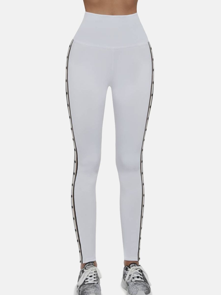 Damskie sportowe legginsy z wysokim stanem wyszczuplającym talię, całkowicie kryjące, modelujące sylwetkę.