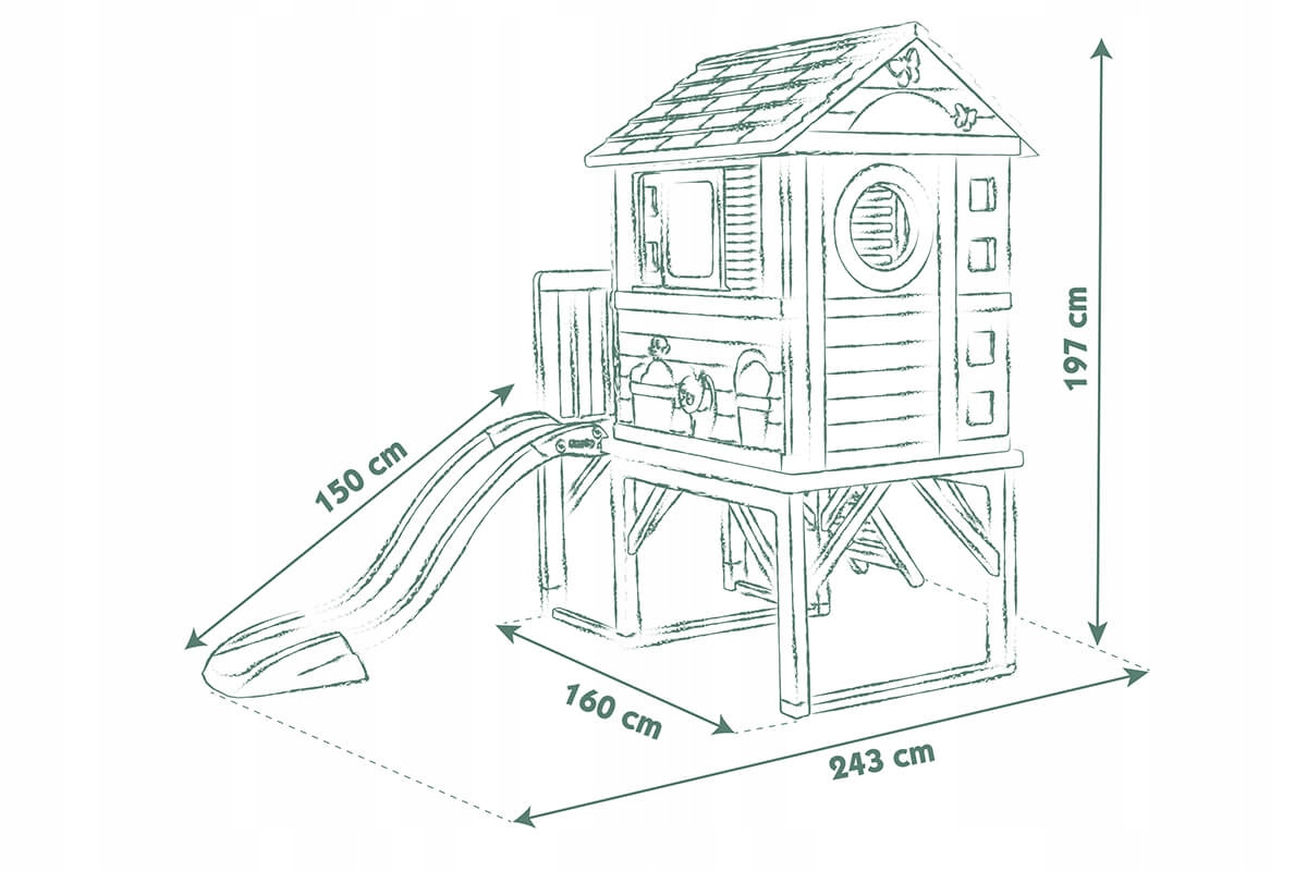 Domek na Palach marki Smoby to więcej niż zwykły domek – to miejsce, które inspiruje do kreatywnej zabawy, rozwija wyobraźnię i zachęca do aktywności na świeżym powietrzu. Dzięki podwyższonej konstrukcji na wysokości 70 cm, maluchy mogą cieszyć się panoramicznym widokiem na otoczenie, a dodatkowe elementy, takie jak zjeżdżalnia o długości 150 cm, antypoślizgowa drabinka oraz przesuwane okiennice, sprawiają, że zabawa nigdy się nie nudzi! Dodatkowo, odporność na warunki atmosferyczne i promieniowanie UV gwarantuje długowieczność produktu, zapewniając lata radości i beztroskich chwil.