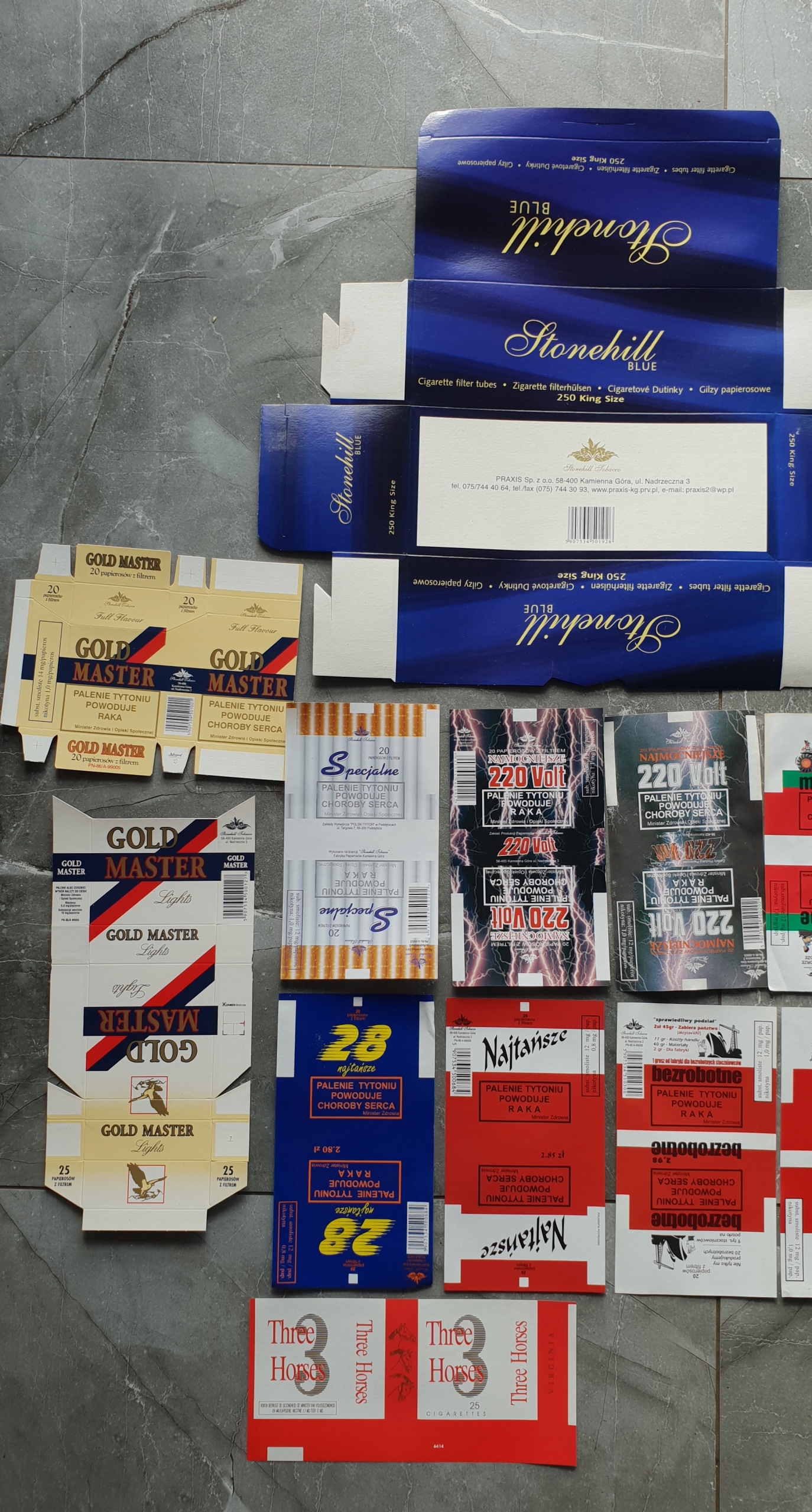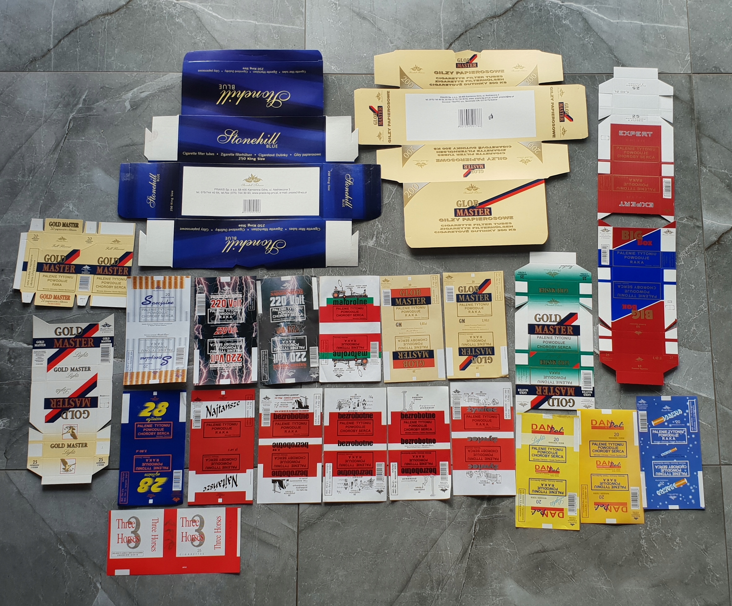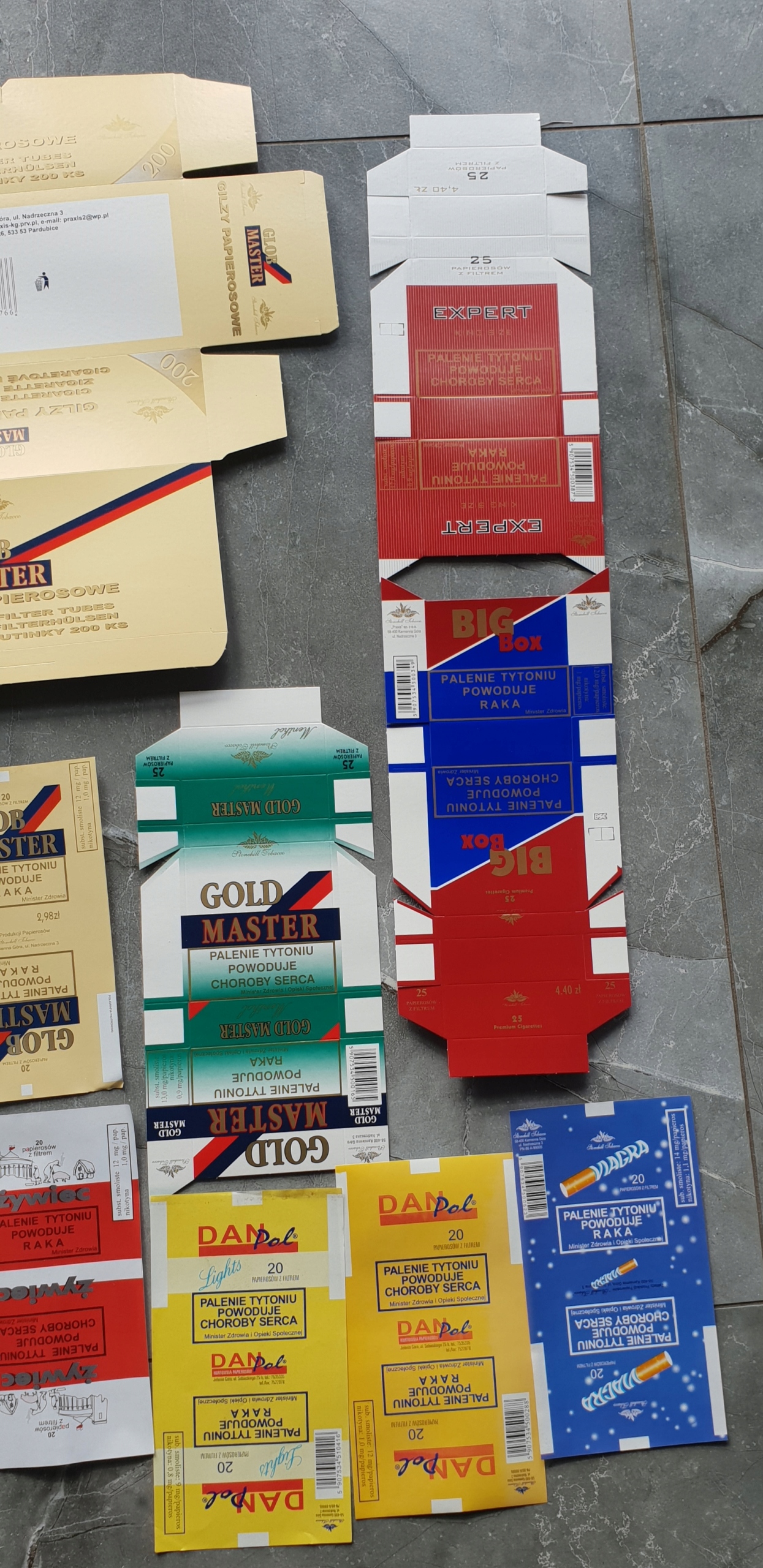 ZESTAW STARYCH ETYKIET OPAKOWAŃ PO PAPIEROSACH 1986 ROK
