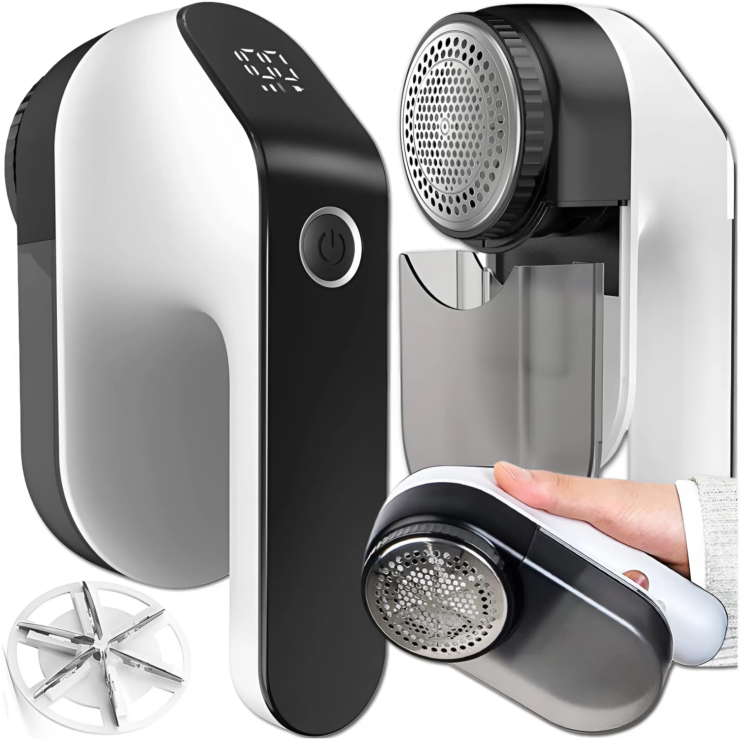 Z tą golarką odświeżysz swoje tkaniny w kilka chwil! Potężna moc, aż 6 ostrzy ze stali nierdzewnej i trzy tryby pracy pozwalają skutecznie usuwać nawet uporczywe kłaczki. Duży pojemnik na odpady i wbudowany wyświetlacz LCD zapewniają komfort użytkowania, a zasilanie akumulatorowe sprawia, że golarka jest zawsze gotowa do działania.