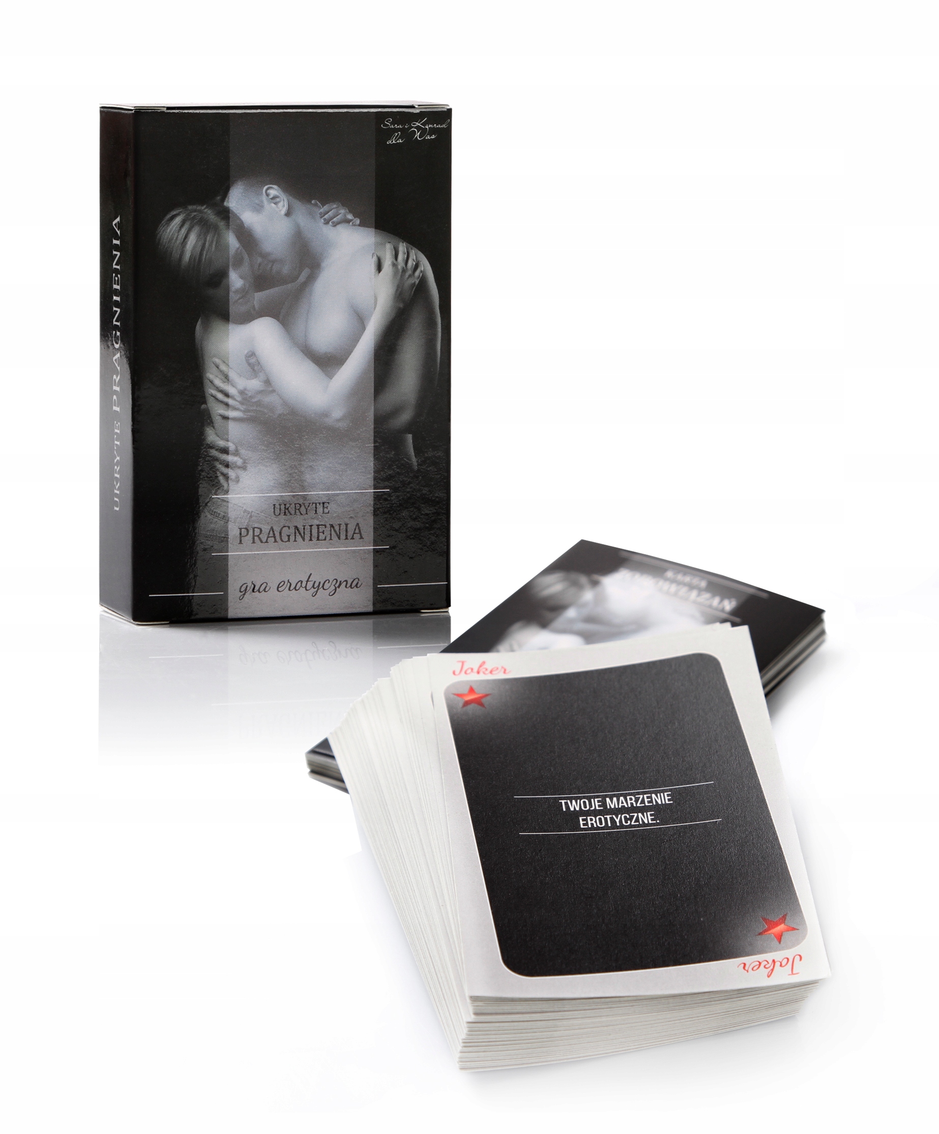 Czy w zakamarkach Twojej namiętności kryją się jeszcze niewypowiedziane pragnienia? Głęboko ukryte? Schowane za niepewnością i skrępowaniem? Ta prosta gra karciana to rozkoszny i skuteczny sposób, który warto zastosować w związku, by uwolnić Wasze pragnienia, otworzyć się na nieznane doświadczenia. By przesuwać granice rozkoszy ku Waszej wspólnej satysfakcji. Jeżeli chcesz wiedzieć, jak odkryć przed swą drugą połową swoje skryte pragnienia, a jednocześnie poznać fantazje, jakie drzemią w jej/jego umyśle i sercu, zrób krok w stronę namiętności i zaproponuj wspólną zabawę z grą Ukryte pragnienia.