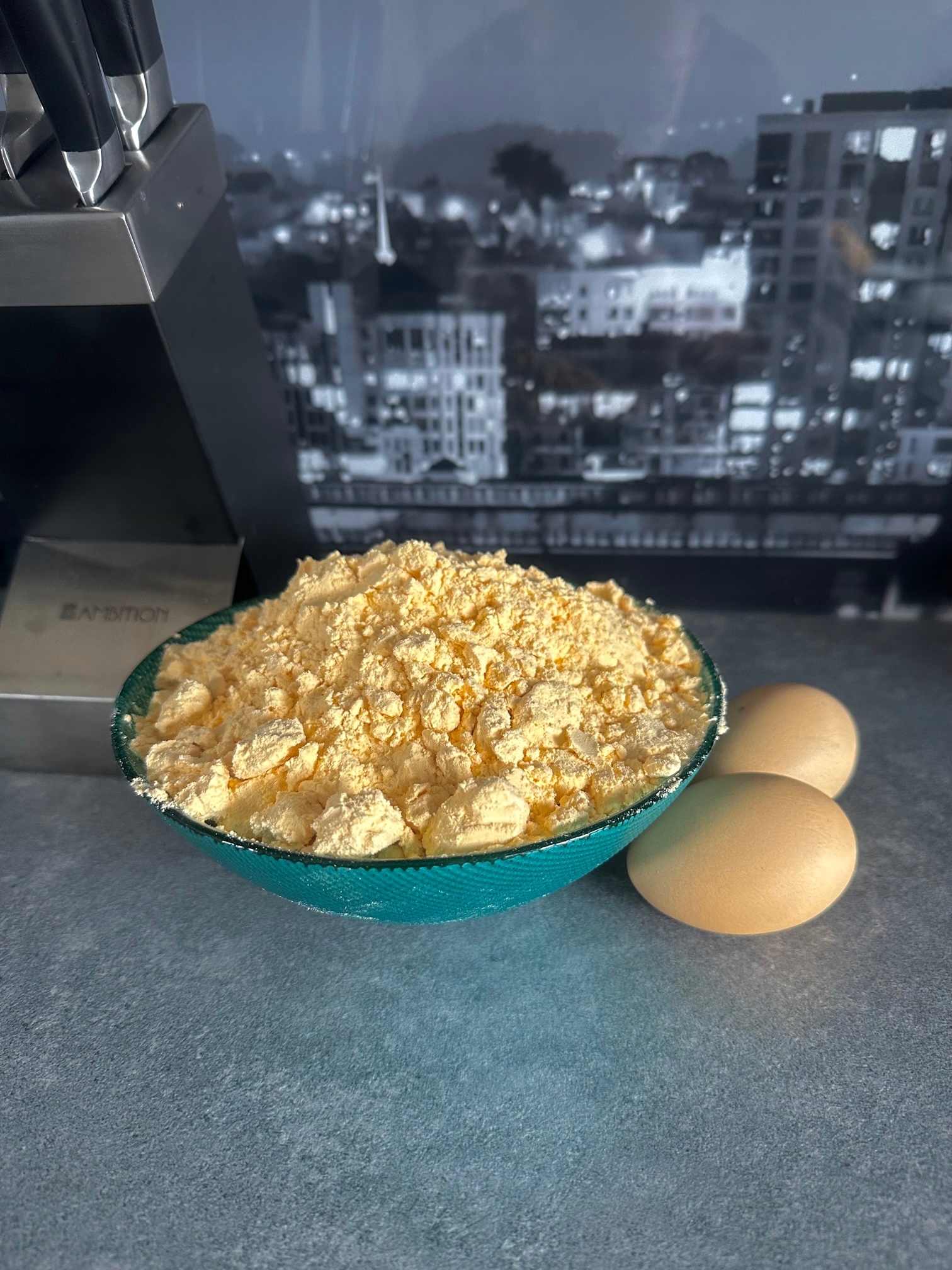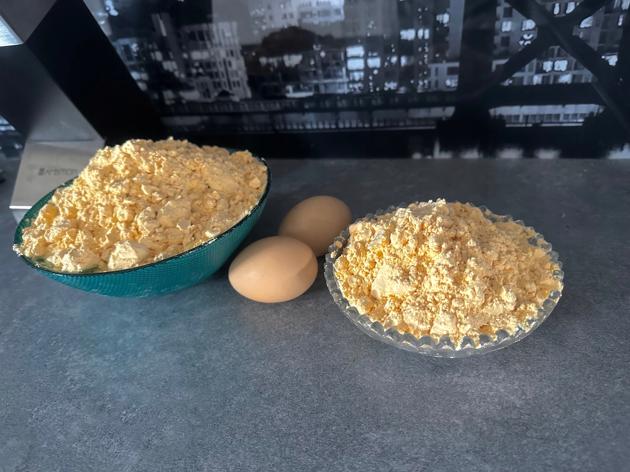 100g jaj w proszku + 300ml letniej wody + wymieszać + odczekać 30min co jakiś czas mieszając = 10 jaj - GOTOWE !!!