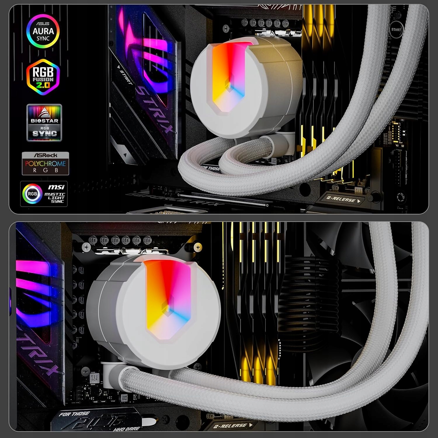 Popraw wygląd swojego komputera za pomocą zaawansowanego systemu oświetlenia ARGB chłodnicy CPU. Sterowanie oświetleniem płyty głównej 5 V ARGB, dzięki któremu możesz indywidualnie dopasować oświetlenie swojego systemu i stworzyć naprawdę wyjątkowy wygląd.