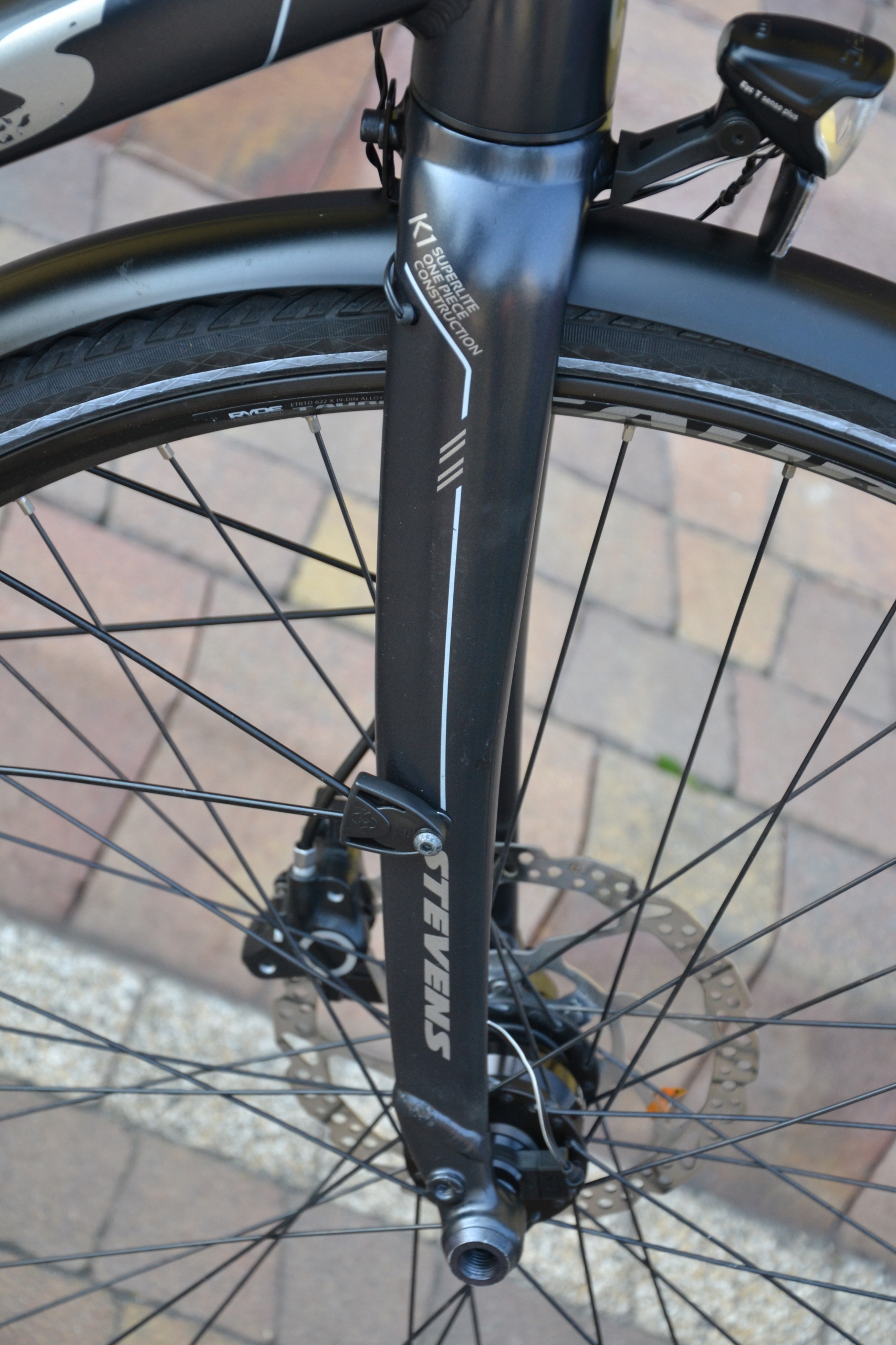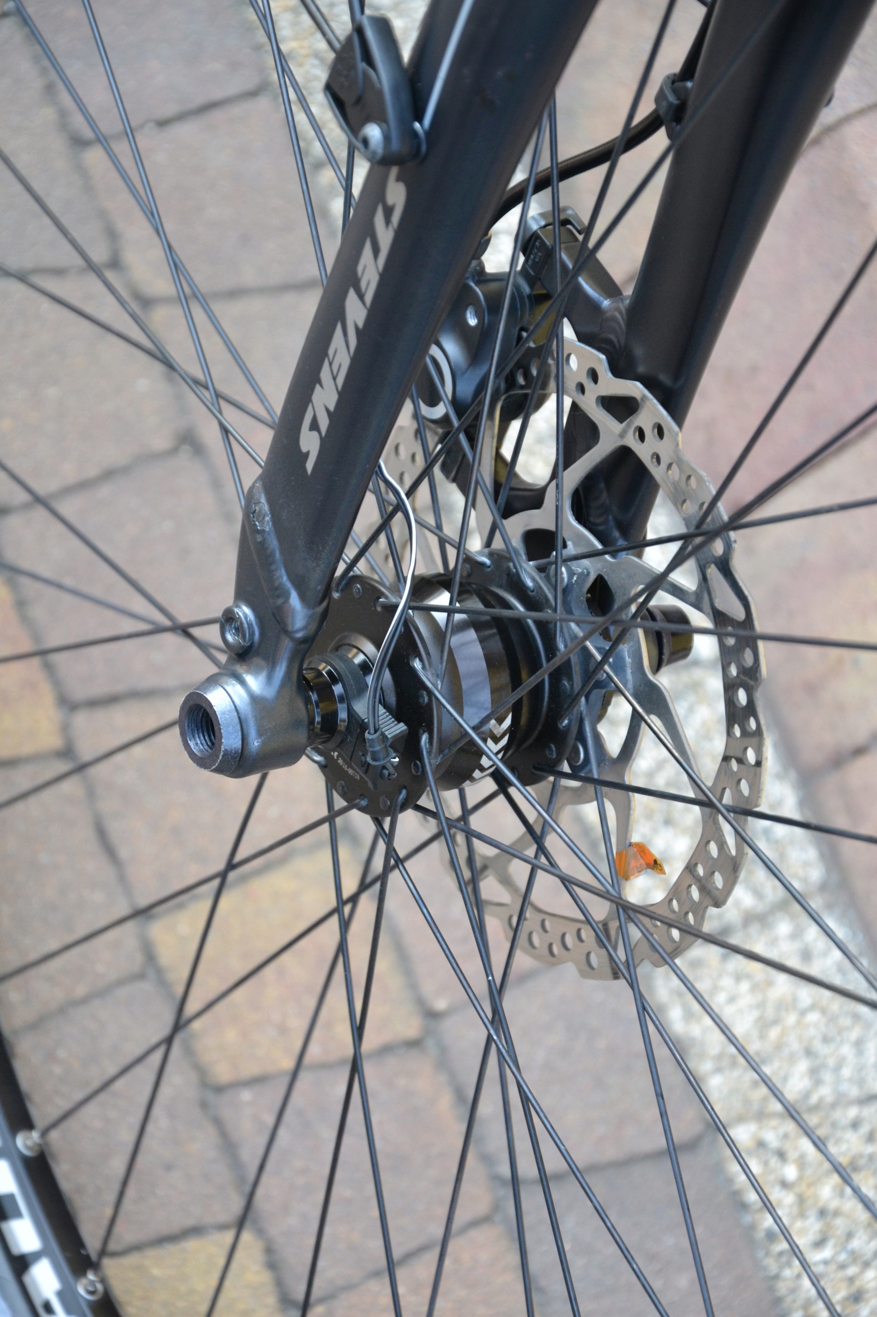 Rama aluminiowa potrójnie cieniowana, napęd na pasku Shimano Nexus 8, hydraulika, widelec na sztywnej osi z dynamem zasilającym lampki.