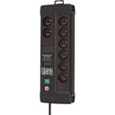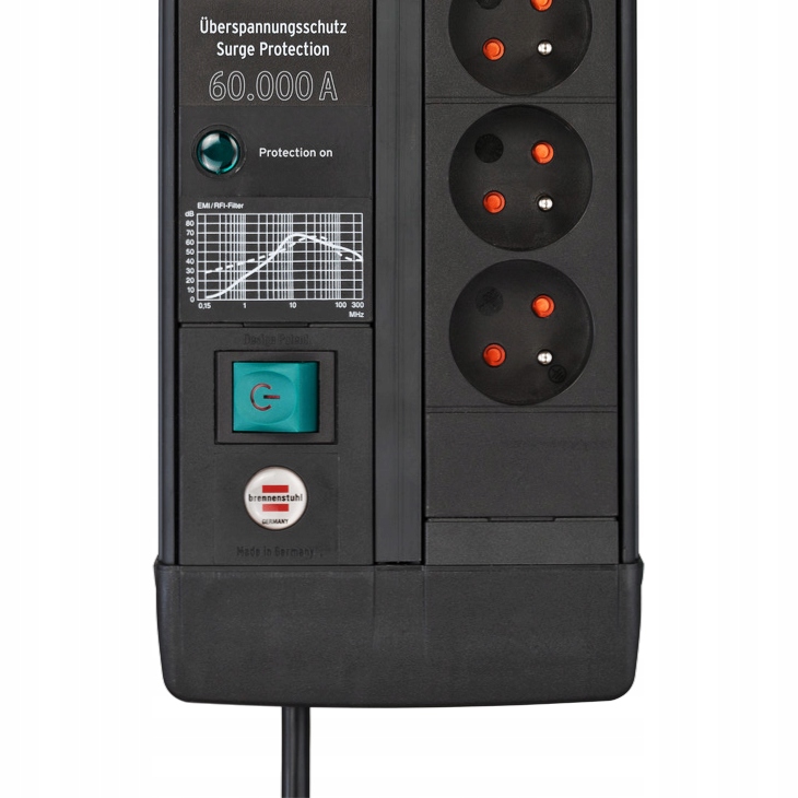Ochronnik przeciwprzepięciowy zapobiega uszkodzeniu urządzeń podłączonych do przedłużacza listwowego na skutek pików napięciowych w sieci, które mogą powstać między innymi w wyniku pośrednich uderzeń pioruna lub załączenia obciążeń indukcyjnych (np. silniki, piece, lampy itd.). Aby zapewnić prawidłowe działanie, urządzenie musi być podłączone do gniazda z prawidłowo zainstalowanym przewodem uziemiającym. Nie można zagwarantować całkowitej ochrony podłączonych urządzeń z powodu ekstremalnie dużej energii, która powstaje w wyniku bezpośredniego uderzenia pioruna. Możliwie maksymalną ochronę przeciwprzepięciową zapewnia koncepcja wielopoziomowej ochrony przeciwprzepięciowej, na którą składają się ograniczniki przepięć typu 1 i 2 (technika instalacyjna) wraz z naszym ogranicznikiem przepięć typu 3 zgodnie z normą EN 61643-11. Po włączeniu zaświeci się lampka kontrolna, co sygnalizuje sprawność zabezpieczenia przeciwprzepięciowego. Jeśli lampka nie świeci, to w gniazdach nie ma napięcia i należy załączyć bezpiecznik automatyczny 16 A. Jeśli pomimo załączenia bezpiecznika automatycznego lampka nadal nie świeci, to zabezpieczenie nie działa i konieczna jest naprawa gniazda u producenta, ponieważ zabezpieczenie uległo zniszczeniu przez bardzo duże przepięcie.