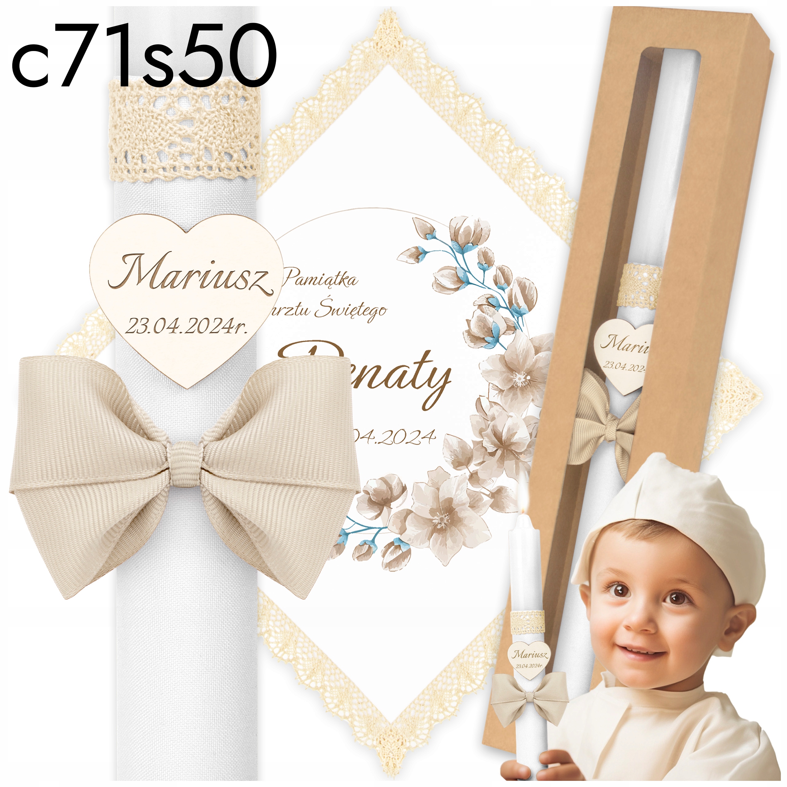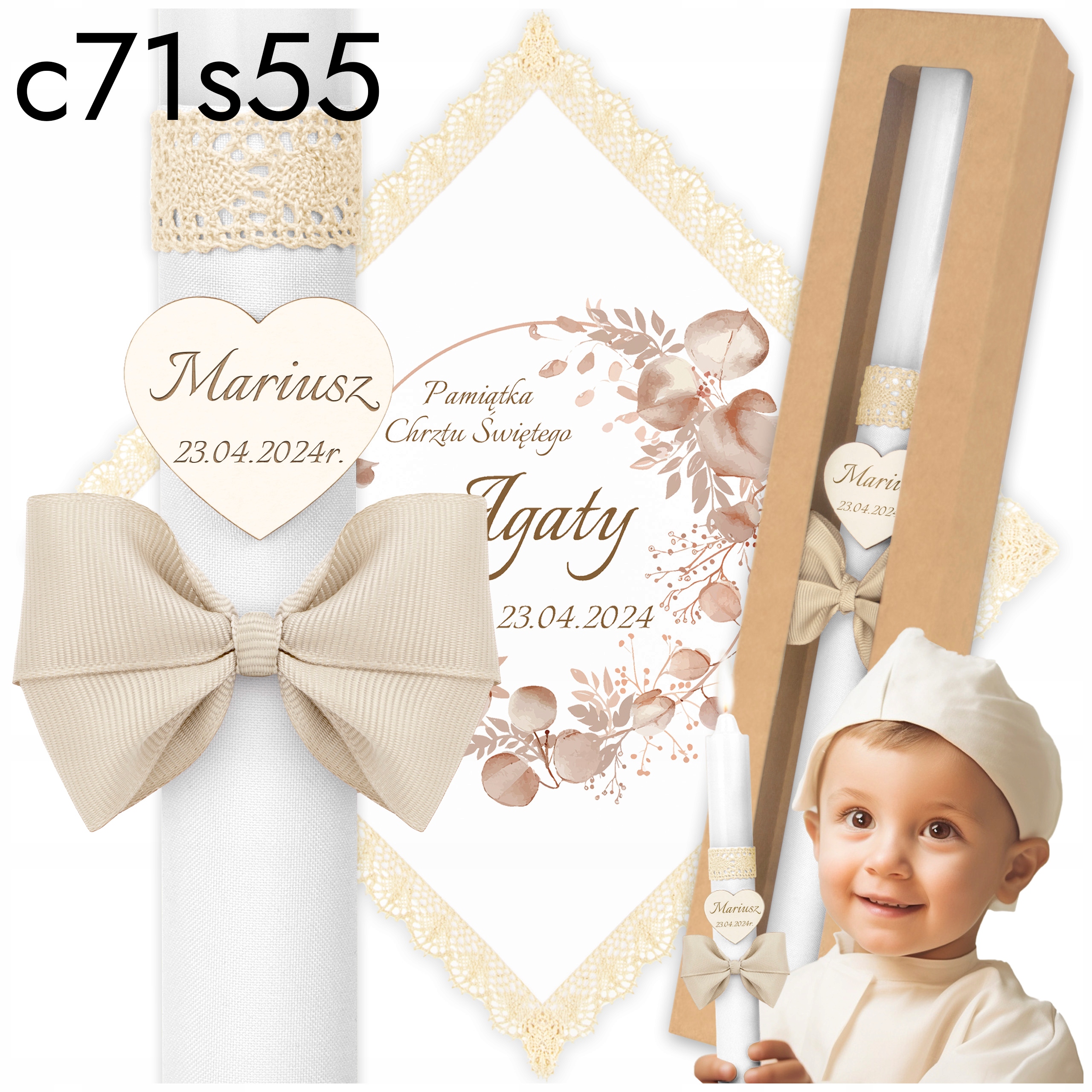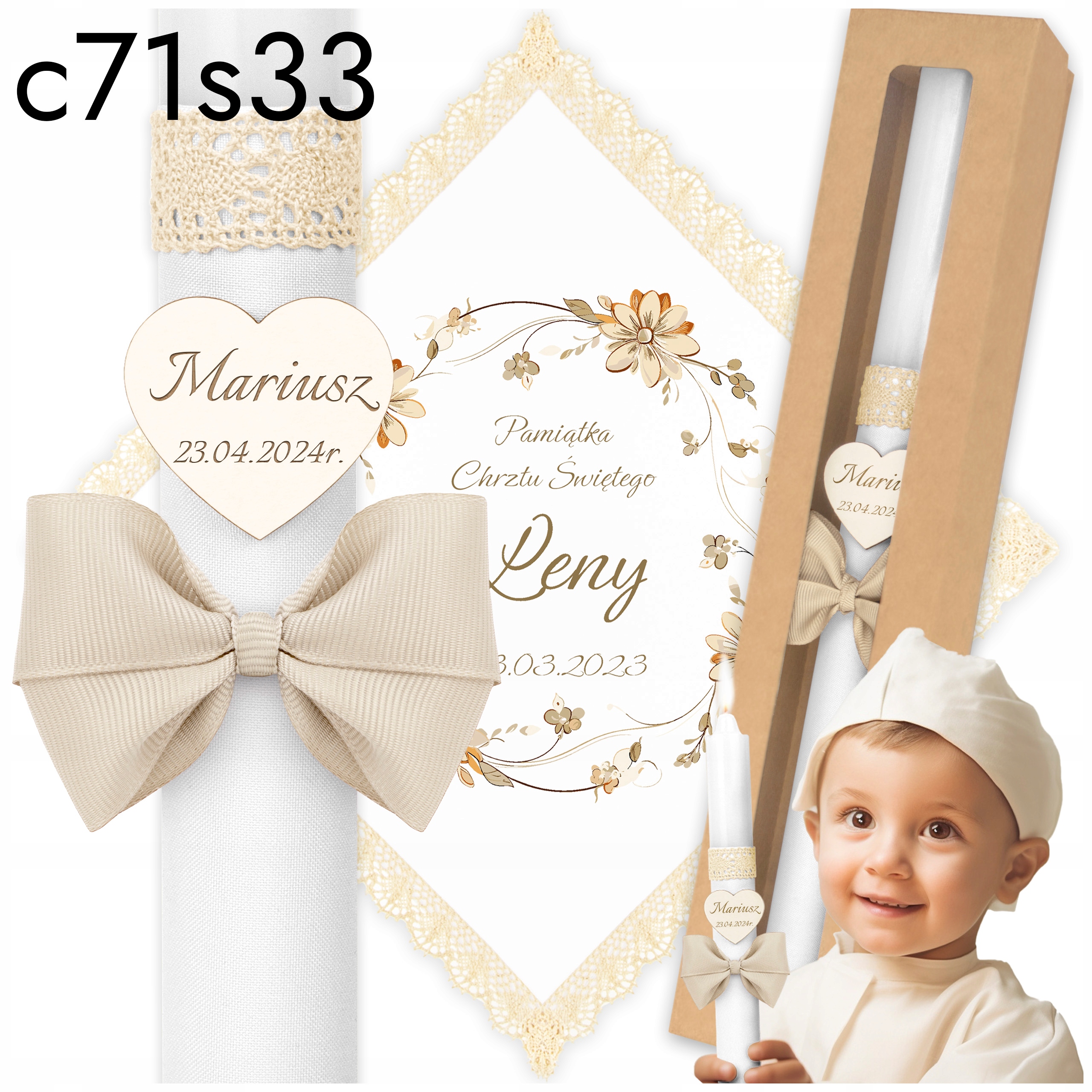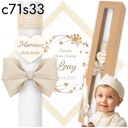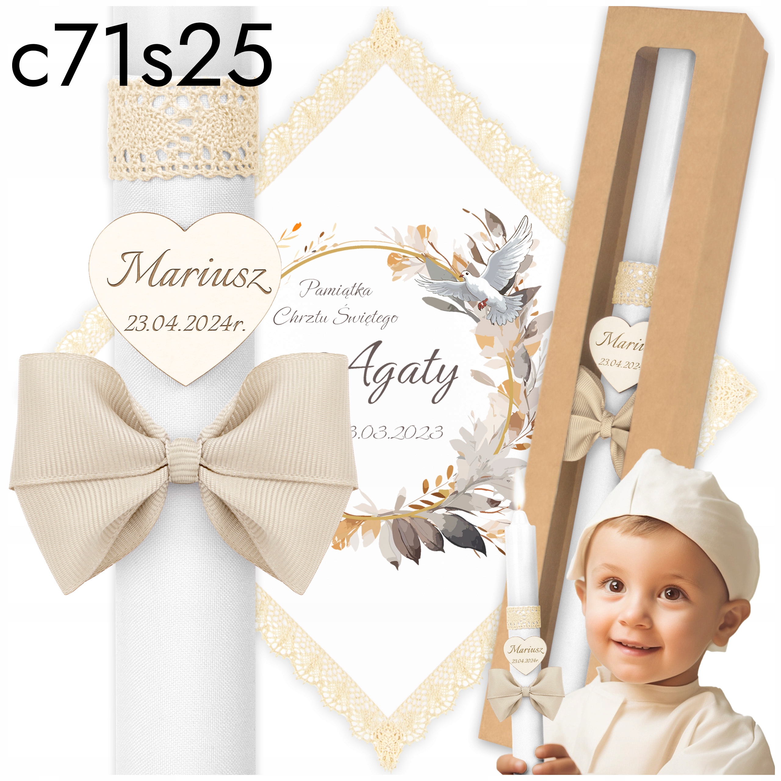 Oferujemy niezwykłą Pamiątkę Chrztu Świętego. Nasza świeca do Chrztu w stylu boho to wyjątkowy dodatek, który wniesie ciepło i wyjątkowy urok do tego ważnego dnia. Oferta zawiera zarówno świecę, białą, zdobioną szatkę do chrztu oraz pudełko na świecę, wszystko stworzone z dbałością o każdy szczegół.
