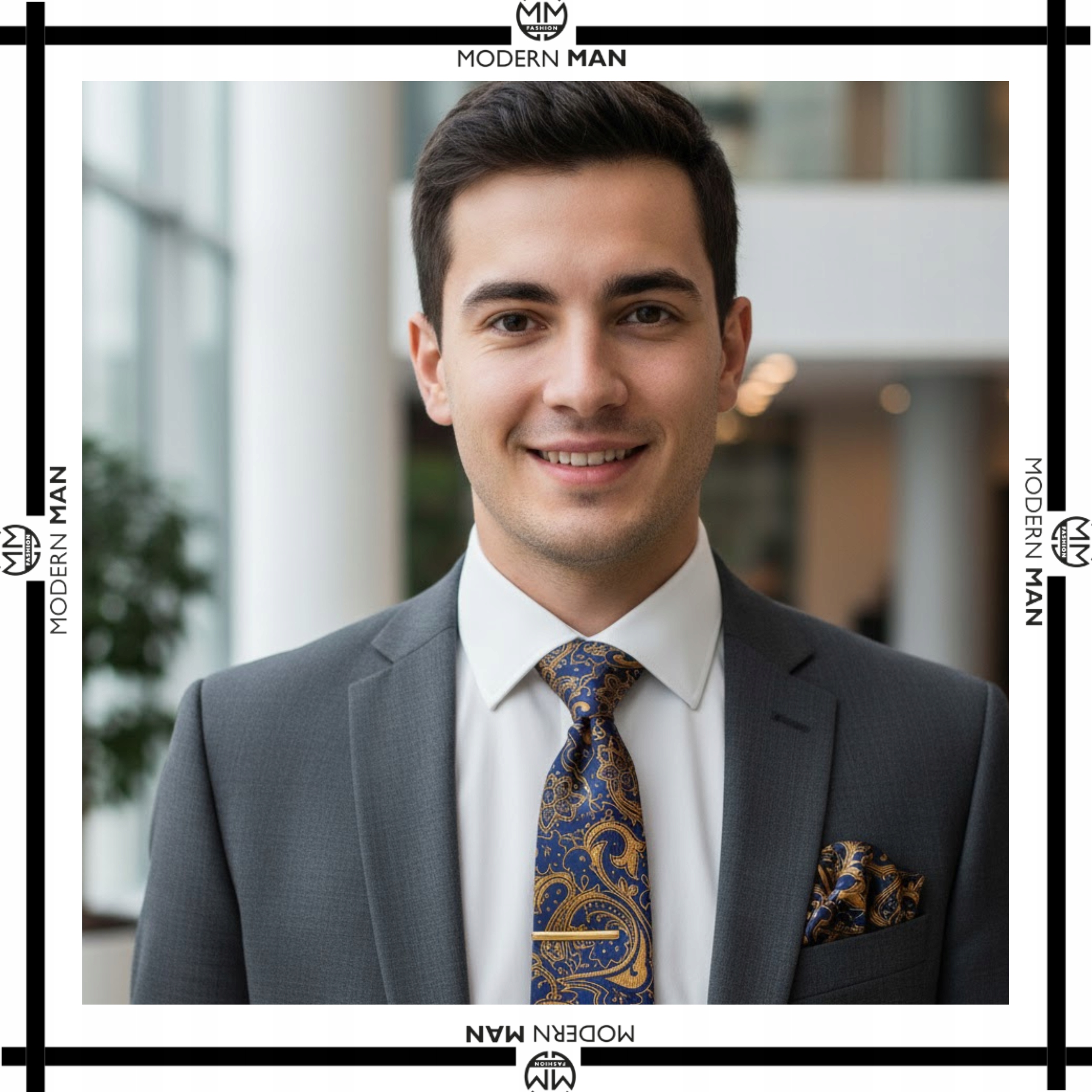 ✅Zestaw MODERN MAN to wygoda i styl w jednym – wszystko zostało zaprojektowane tak, by było łatwe w użyciu. Krawat ma klasyczną szerokość i dobrze układa się na szyi, a poszetkę można złożyć zarówno tradycyjnie, jak i bardziej fantazyjnie. Spinki do mankietów zakładasz intuicyjnie, a spinka do krawata stabilizuje całość z elegancją. To zestaw, który sprawdzi się w każdej sytuacji – od ślubu, przez studniówkę, po rozmowę rekrutacyjną. Wystarczy kilka ruchów i jesteś gotowy na wielkie wyjście.