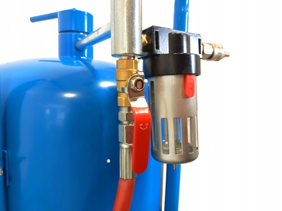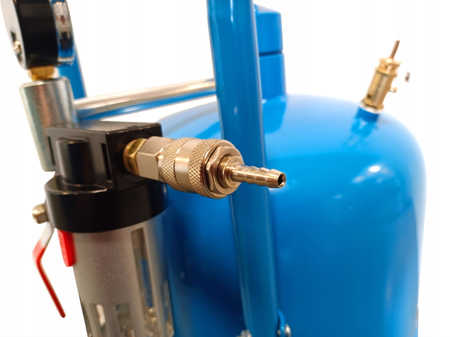 Manometr ułatwia kontrolę ciśnienia w zbiorniku zwiększając bezpieczeństwo w miejscu pracy.