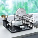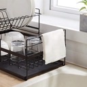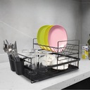 Dwupoziomowa suszarka do naczyń w kolorze czarnym to nowoczesne i funkcjonalne rozwiązanie do efektywnego suszenia naczyń po myciu. Wykonana z wytrzymałego metalu nierdzewnego, zapewnia trwałość i odporność na korozję, nawet przy częstym kontakcie z wodą.