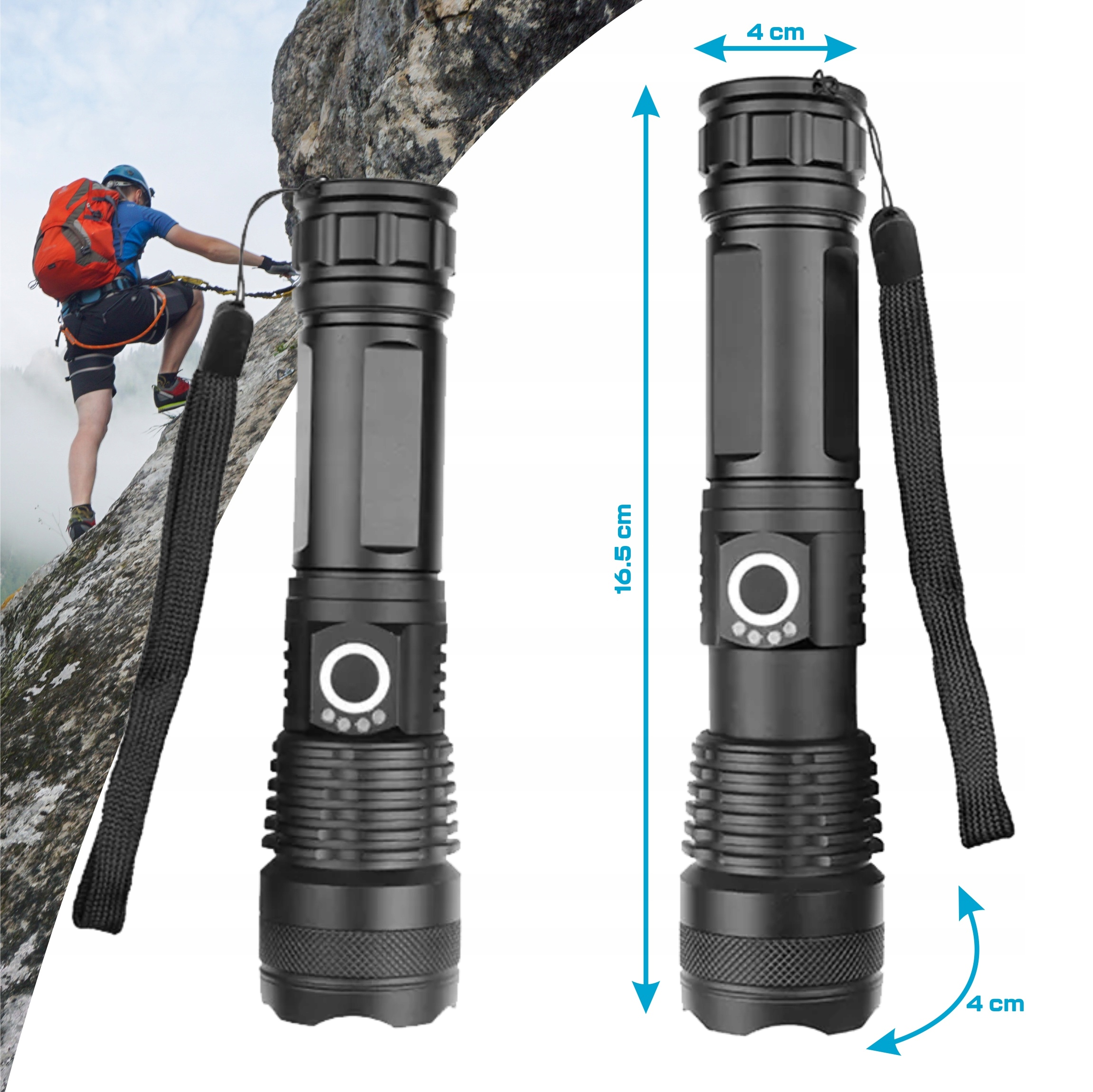➡️ Wyrusz w ciemność bez obaw dzięki naszej ULTRAMOCNEJ latarce taktycznej LED XHP90, która łączy w sobie potężny zasięg, wygodę i niezawodność.