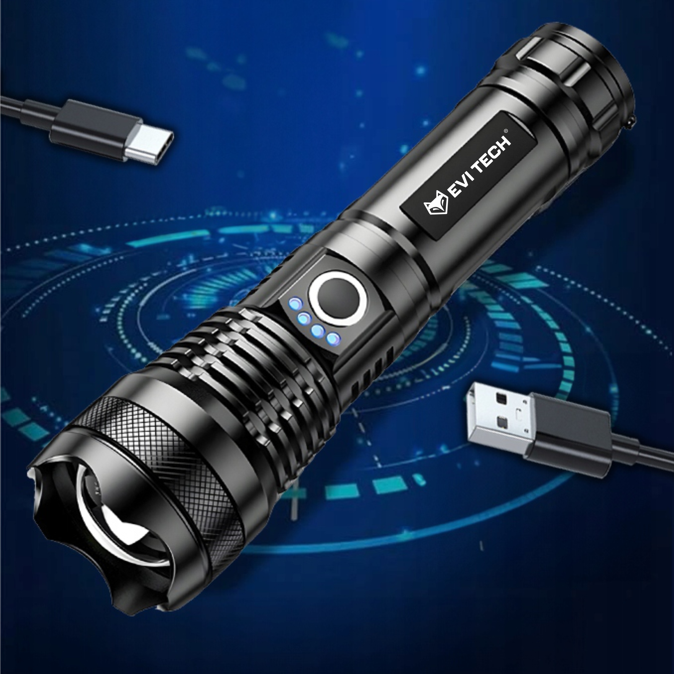 ➡️ Wyrusz w ciemność bez obaw dzięki naszej ULTRAMOCNEJ latarce taktycznej LED XHP90, która łączy w sobie potężny zasięg, wygodę i niezawodność.