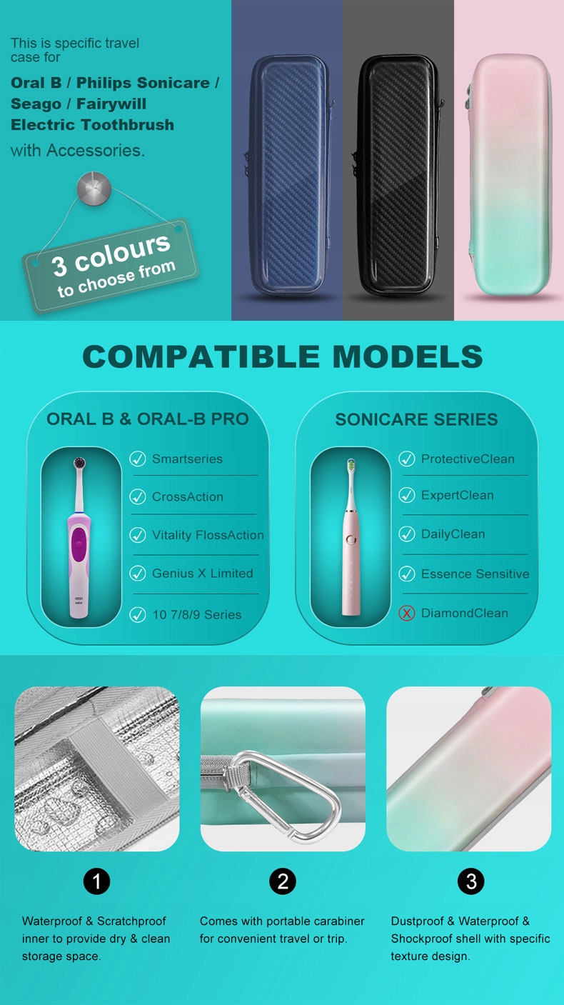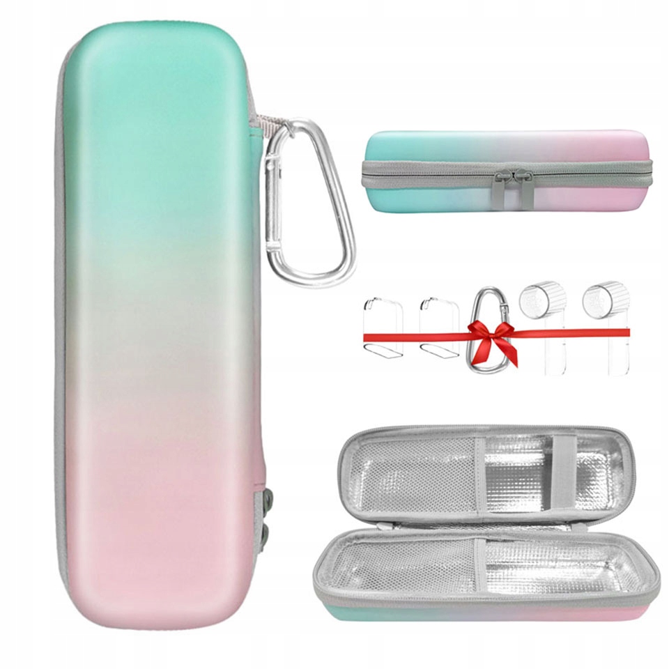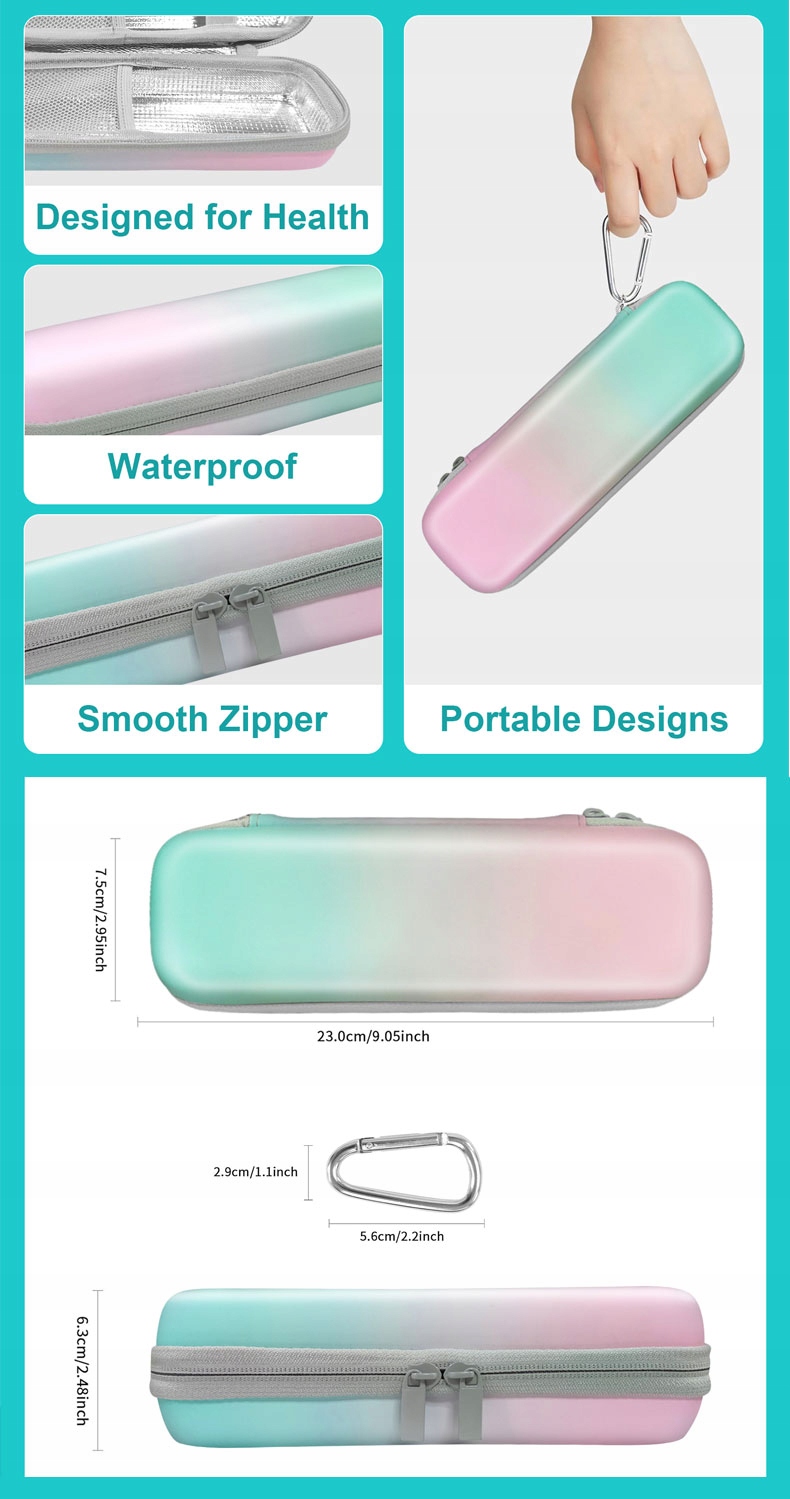 EVA etui podróżne na szczoteczkę do zębów w kolorze zielonym i różowym gradient + 2 kwadratowe zatyczki przeciwpyłowe + 2 okrągłe zatyczki przeciwpyłowe EVA etui do przechowywania szczoteczek w kolorze zielonym i różowym gradient z szarym poliestrowym zamkiem błyskawicznym + szary metalowy uchwyt z klamrą górską