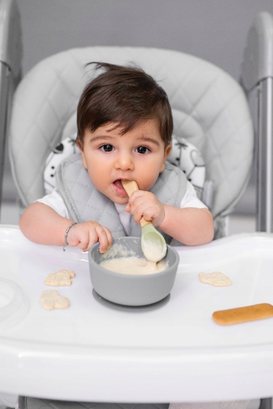 Jest odpowiedni już od 6. miesiąca życia. Ma dwa wygodne uchwyty, które ułatwiają dziecku samodzielne trzymanie – jedną lub dwiema rączkami.
