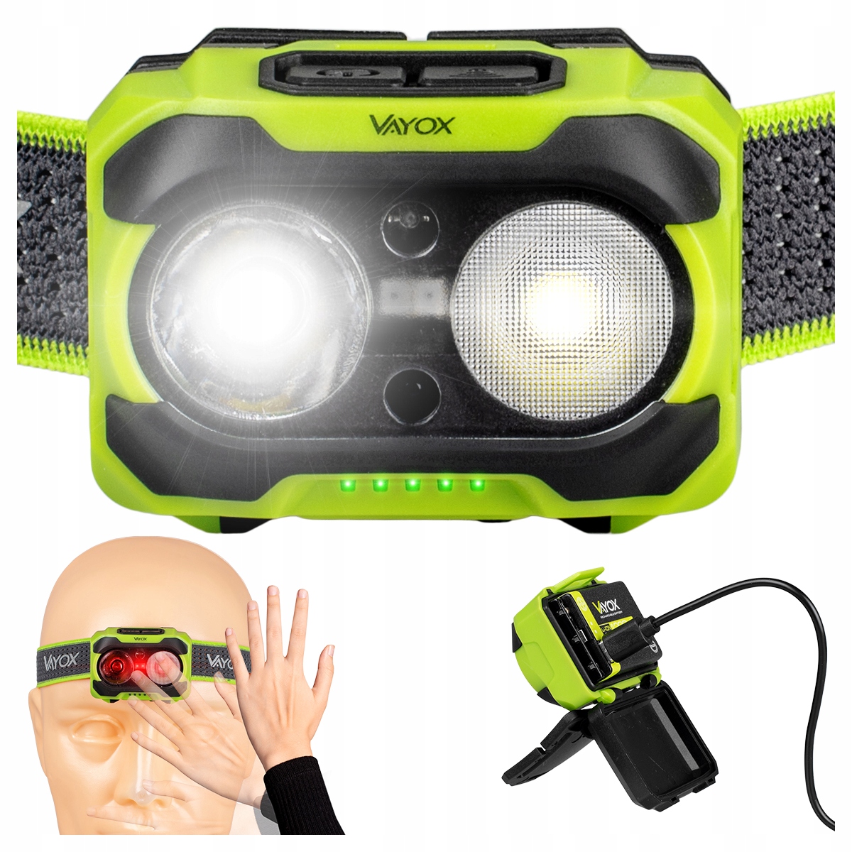 LATARKA LED CZOŁOWA AKUMULATOROWA CZUJNIK USB-C TWINBEAM 600LM PRO VAYOX