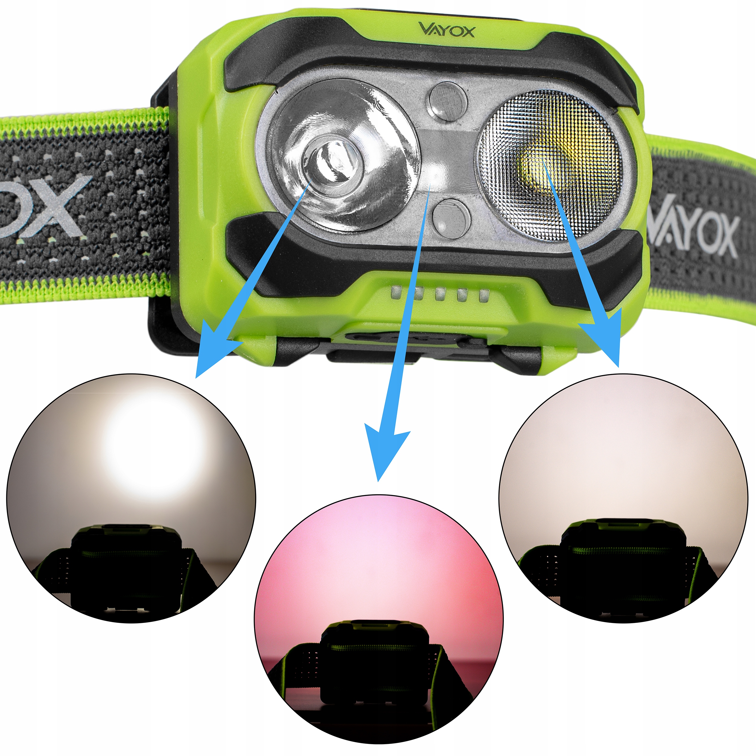 • Latarka czołowa Vayox o mocy 600lumen, posiada 6 niezależnych trybów pracy i czujnik ruchu.