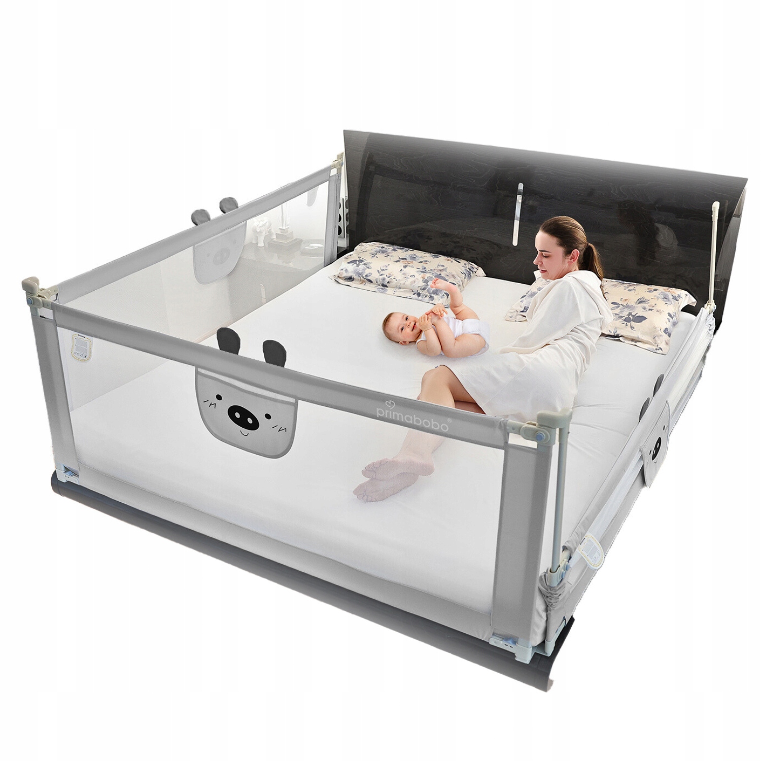 Каждая из ограждение имеет двустороннюю систему опускания. Продукт защищен, чтобы ребенок сам не давалсовет, чтобы выйти, заключается в том, чтобы нажать две кнопки одновременно. Материал можно свернуть до самого низа, то есть до самого матраса.