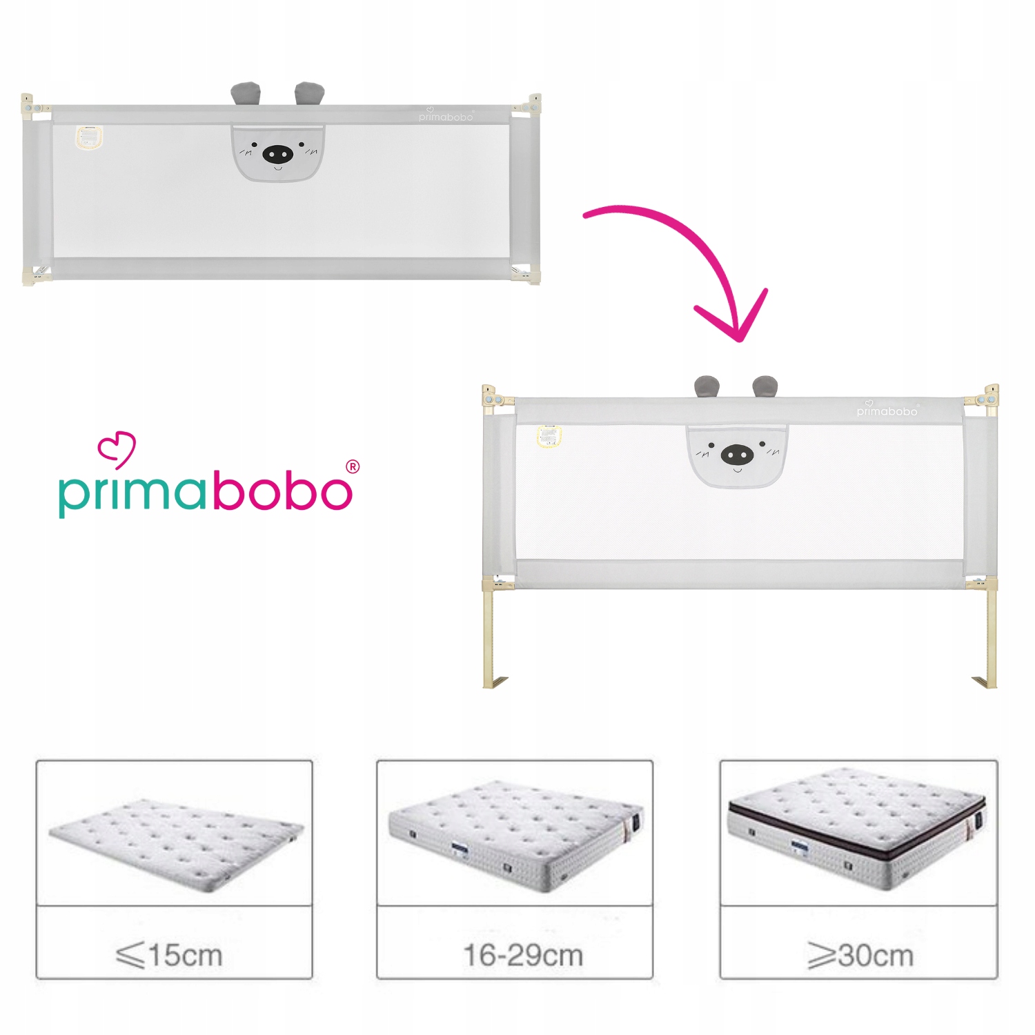 Barierkę można dostosować do wysokości materaca, maksymalna wysokość barierki to 98 cm a minimalna to 68 cm. Metalowe nóżki mają 28 stopni regulacji. Produkt mocowany jest pomiędzy ramą łóżka a materacem, posiada śruby, które można przykręcić od spodu do ramy łóżka.