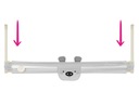 Niebieski przycisk góra dół - to specjalny system blokujący przed przypadkowym rozłożeniem. System gwarantuje, że barierka nie opuści się samoczynnie podczas nacisku przez dziecko