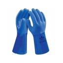 Rękawice robocze ochronne o właściwościach chemoodpornych. Ergonomiczny bezszwowy fason o zwiększonej wrażliwości czuciowej. Rękawice wykazują dobrą odporność mechaniczną na ścieranie i rozdarcie oraz odporność na kwasy, zasady, n-heptan, popularne detergenty, oleje, smary i benzyny.