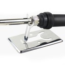 W zestawie znajduje się stojak, dzięki któremu, wygodnie i bezpiecznie odłożysz gorącą kolbę lutownicy. Solidne wykonanie i dobrze wyważona konstrukcja zapewnia wysoki komfort pracy.
