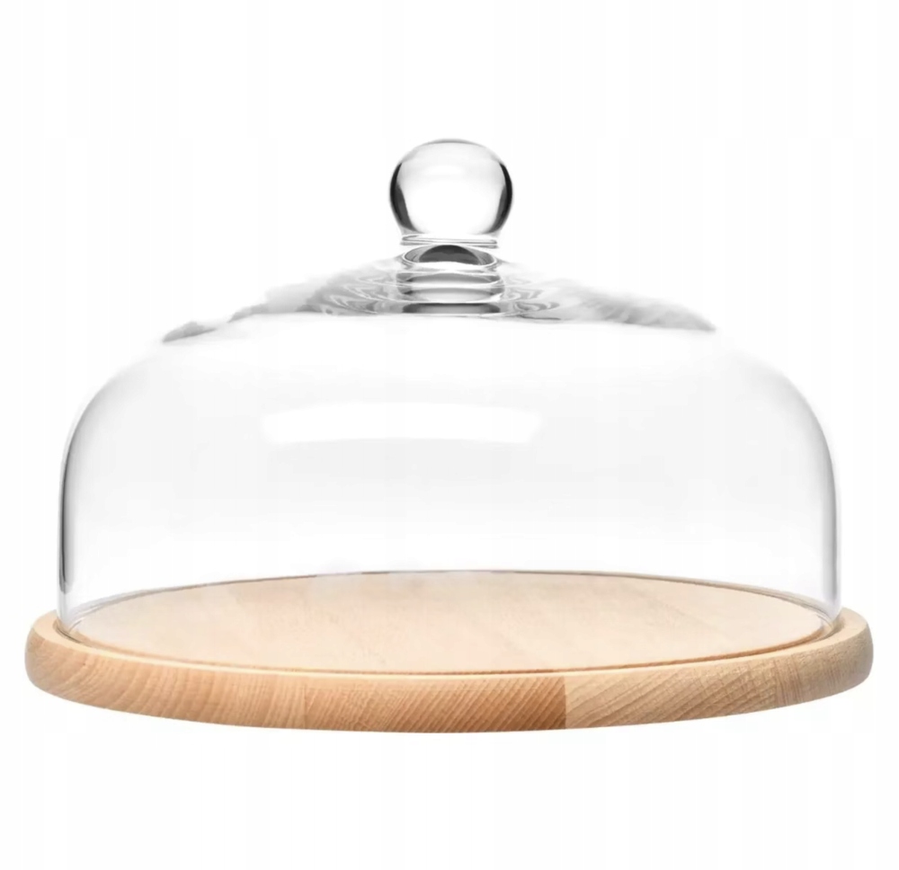 Ręcznie wykonany klosz patera z wygodnym uchwytem zapewnia komfort podczas przenoszenia, a także doskonale współgra z drewnianym spodem. Po zdjęciu klosza, okrągła drewniana deska może być używana samodzielnie jako taca do serwowania wędlin lub serów. Drewniany spód wykonany został z bukowego drewna i zaimpregnowany olejami roślinnymi, które są bezpieczne w kontakcie z jedzeniem.