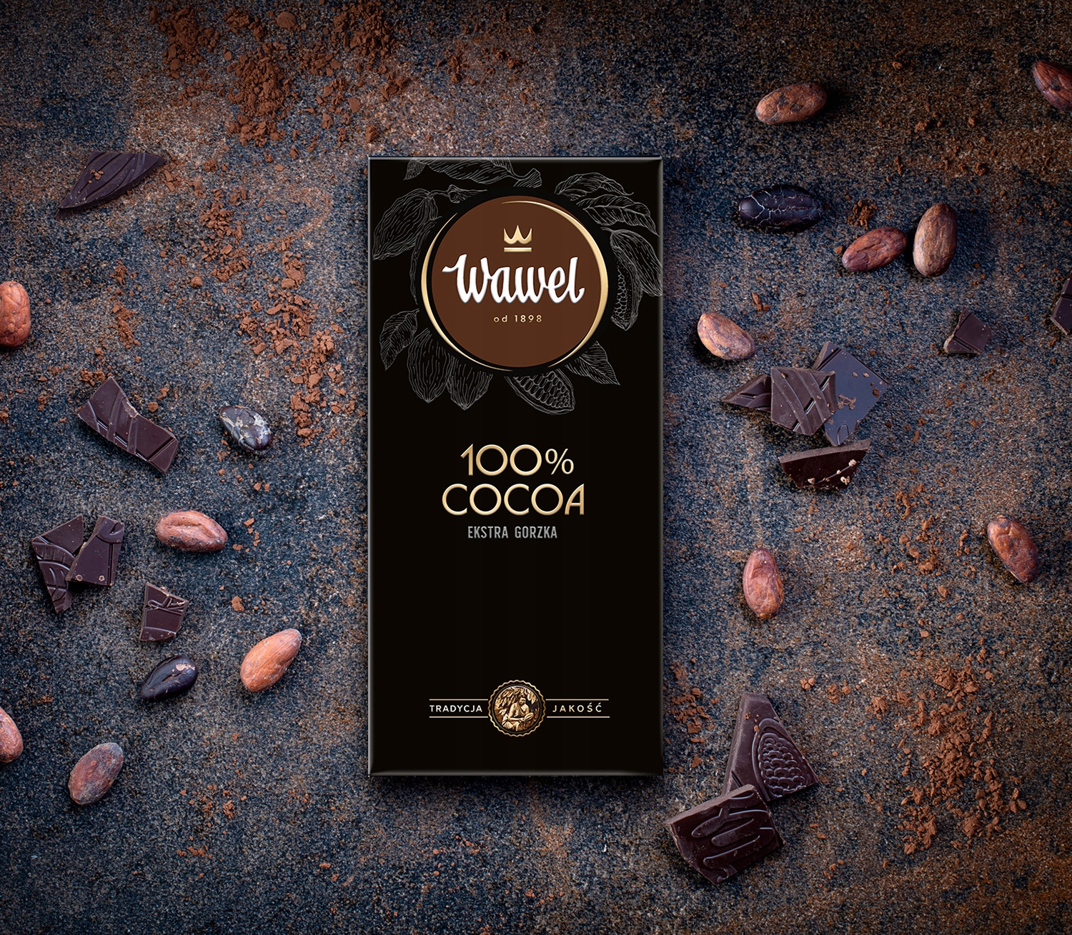 Tabliczkę Wawel Extra Gorzka Premium 100% cocoa wyróżnia silnie intensywny, kuszący aromat oraz pełny i głęboki, wielowymiarowy smak kakao. To zasługa wyjątkowo wysokiej zawartości masy kakaowej (100% masy produktu), wytwarzanej wyłącznie z najlepszych ziaren kakaowca, pochodzących z plantacjach położonych u wybrzeży Afryki.