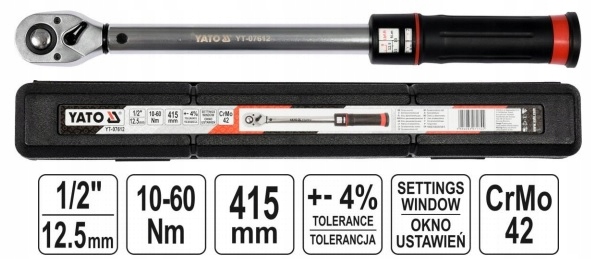 KLUCZ DYNAMOMETRYCZNY 1/2' 10-60Nm YATO YT-07612