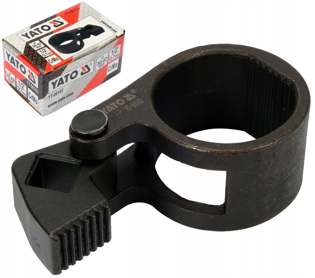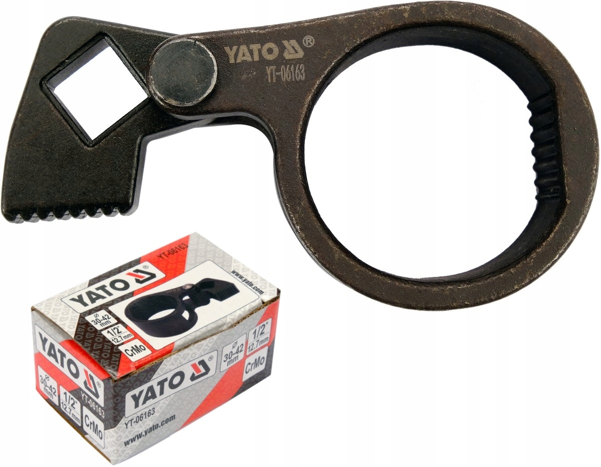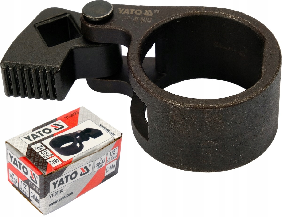 Klucz marki Yato o zakresie pracy 30-42 mm został wykonany ze specjalnej stali (CrMo). Służy do odkręcania i dokręcania drążka kierowniczego w pojazdach. Znajduje zastosowanie w profesjonalnych warsztatach samochodowych.
