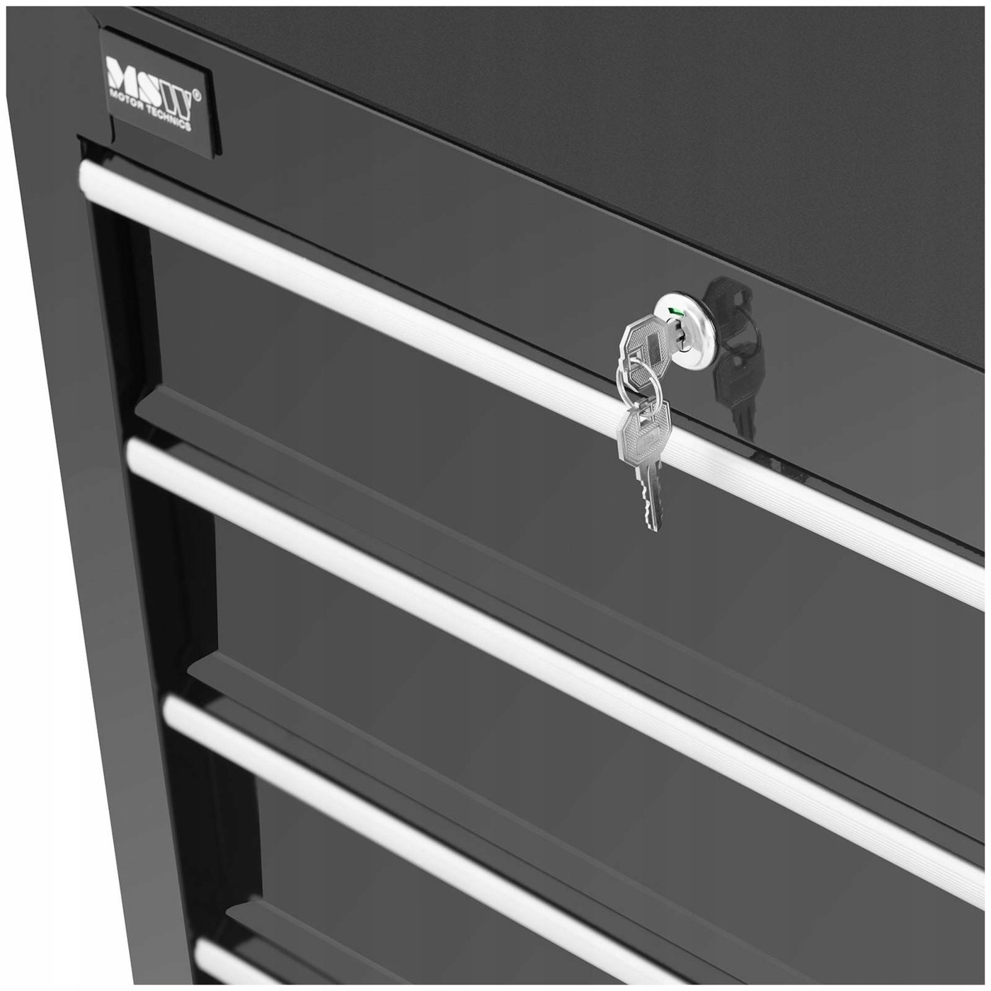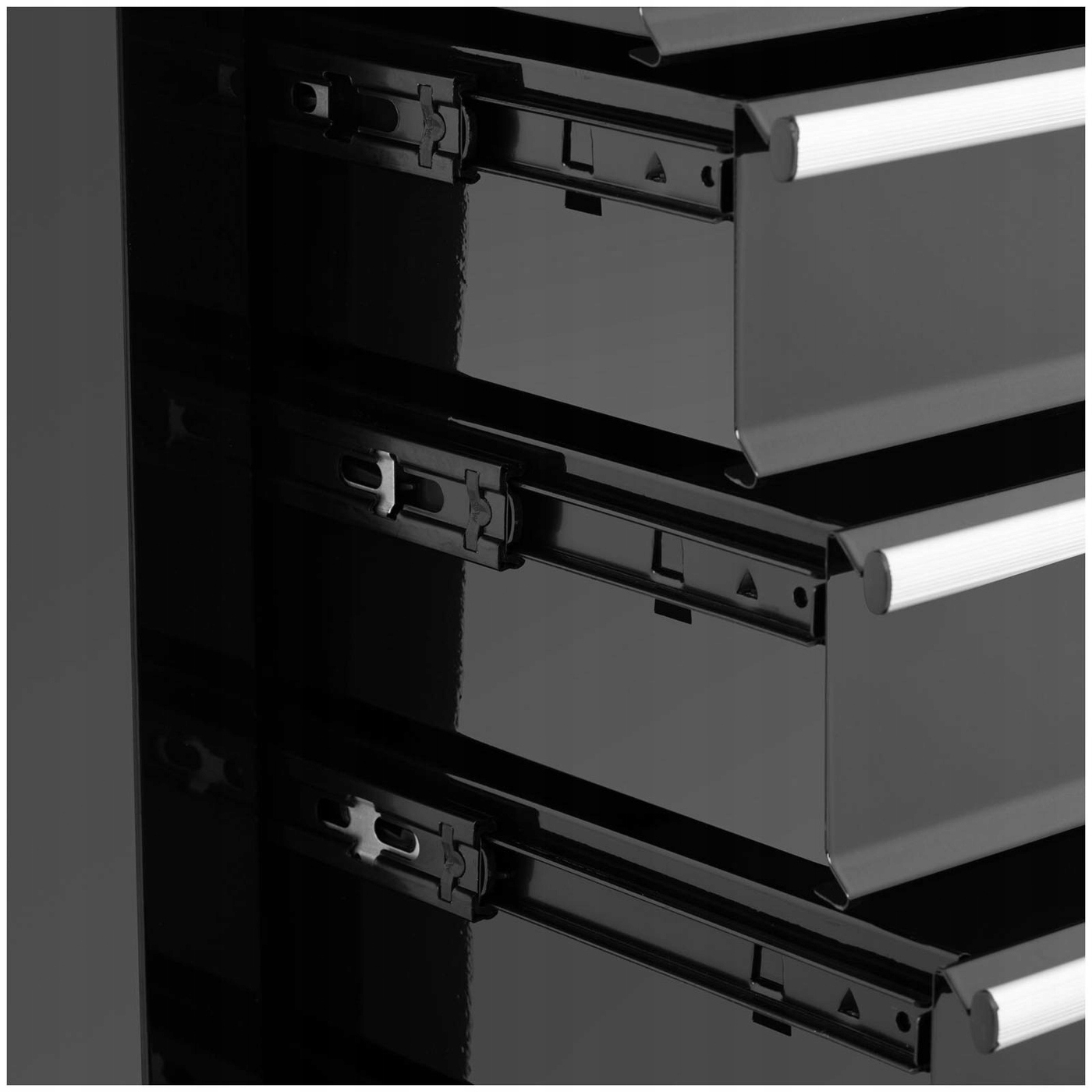 5 pojemnych szuflad na prowadnicach kulkowych posiada wewnątrz maty, które zapobiegają ślizganiu się narzędzi. Szuflady mają wymiary 51 x 29 x 10 cm. Powierzchnia na górze o wymiarach 61 x 32,5 cm i nośności do 25 kg zapewnia dodatkową przestrzeń roboczą, np. żeby odłożyć narzędzie w czasie pracy.