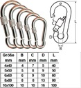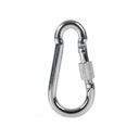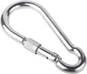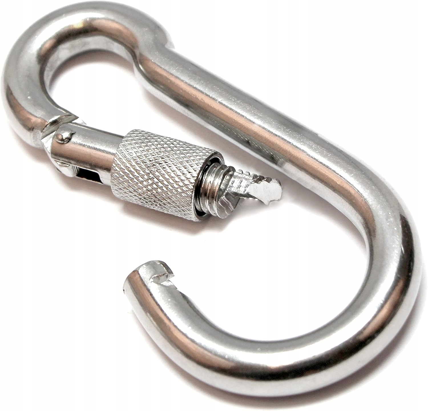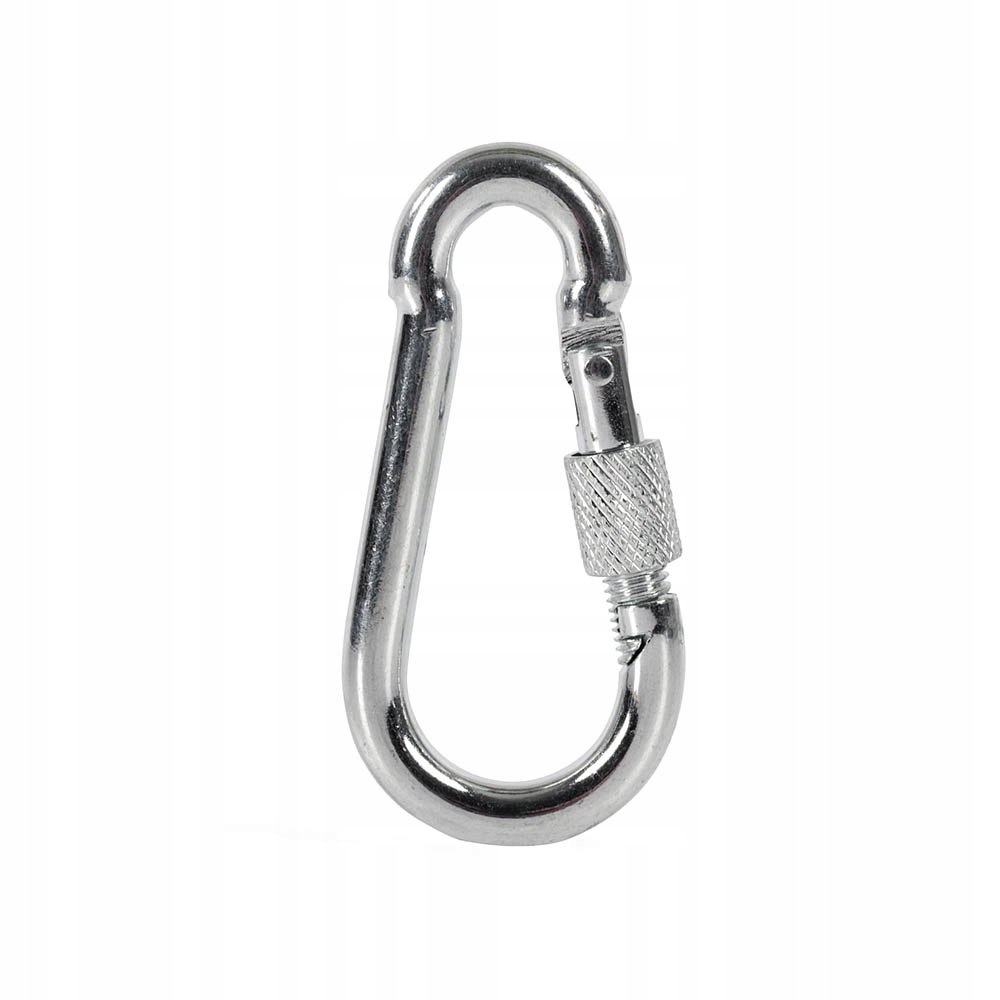 Karabińczyki to metalowe klipsy z uchylną sprężyną do zamykania blokady, pozwalające na szybkie łączenie ich z innymi elementami. Nakrętka dodatkowo zabezpiecza przed otwieraniem się karabińczyka.