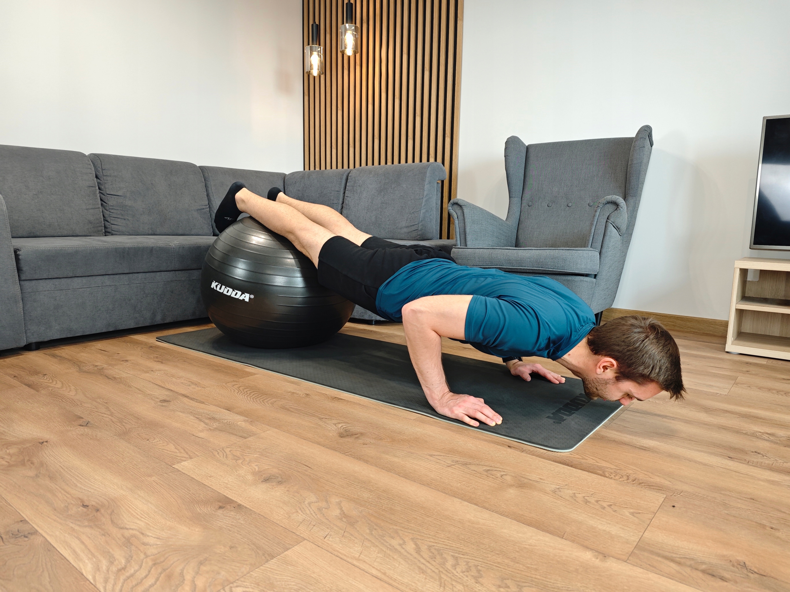 ✅ Piłka została wykonana z wytrzymałego materiału PVC, który nie przykleja się do ciała, nie wydziela nieprzyjemnego zapachu oraz nie skrzypi podczas ćwiczeń.