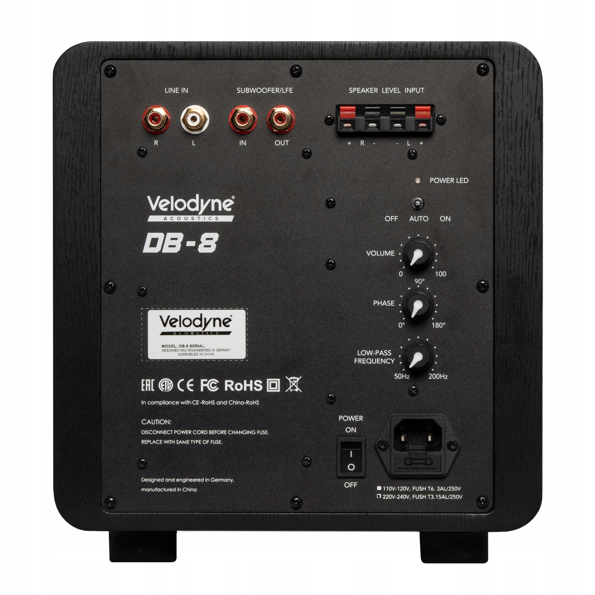 Subwoofer Velodyne Deep Blue 8 (DB-8) to kompaktowe urządzenie o wysokiej dynamice, zaprojektowane do wiernego odwzorowania niskich częstotliwości. DB-8 wyposażony jest w 8-calowy głośnik skierowany do przodu oraz wzmacniacz klasy AB, oferujący 300 W mocy RMS, co gwarantuje potężny bas nawet przy mniejszych rozmiarach urządzenia. Jego szerokie pasmo przenoszenia (18–300 Hz, z użytkowym zakresem 32–180 Hz) oraz solidna obudowa z MDF w konstrukcji zamkniętej minimalizują zniekształcenia i drgania, zapewniając czyste i precyzyjne brzmienie. Dodatkowo, subwoofer oferuje łatwą integrację z systemami audio dzięki wszechstronnym złączom wejść i wyjść.