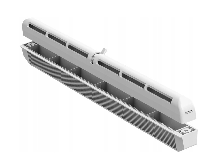 Nawiewnik okienny PO 400 to urządzenie, które umożliwia stały i kontrolowany dopływ świeżego powietrza do różnego rodzaju pomieszczeń. Można go montować na ramie okna w mieszkaniach, domach jednorodzinnych, biurach oraz innych przestrzeniach. Jest szczególnie przydatny tam, gdzie stale potrzebna jest wentylacja. Dzięki niemu nie ma konieczności otwierania okien, a świeże powietrze jest dostarczane w sposób ciągły i kontrolowany. Nawiewnik redukuje przeciągi, zmniejsza hałas z zewnątrz i pomaga zapobiegać nadmiernemu ochładzaniu pomieszczeń zimą.