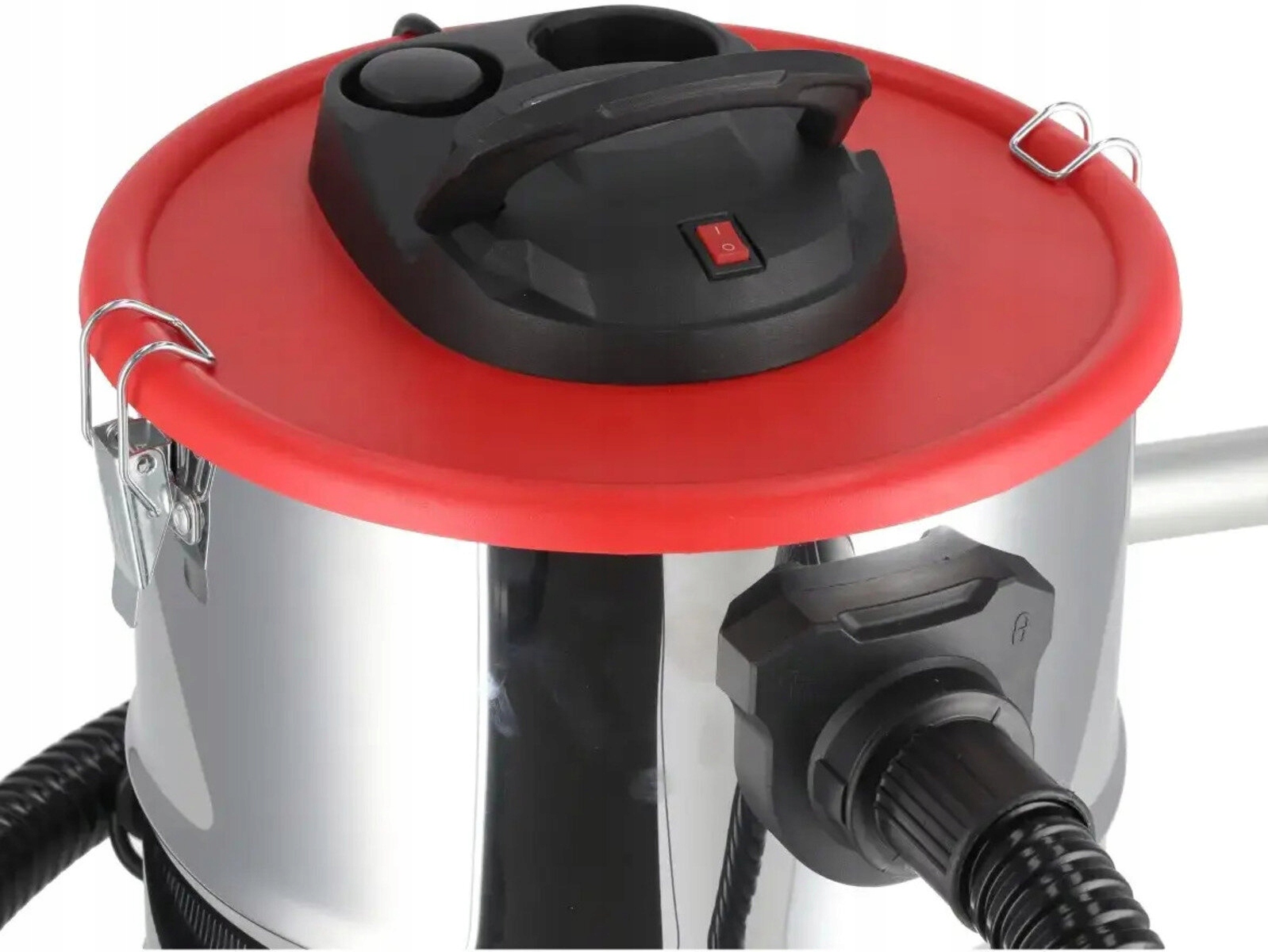 Wyposażenie urządzenia obejmuje metalowy, powlekany wąż oraz aluminiową końcówkę roboczą, które umożliwiają bezpieczne i wygodne sprzątanie popiołu. System filtracji składa się z dwóch filtrów: filtr żaroodporny, który chroni odkurzacz przed skutkami podwyższonej temperatury oraz zmywalny filtr HEPA, który efektywnie zatrzymuje nawet najdrobniejsze cząsteczki pyłu, zapewniając czystą i bezpieczną pracę.