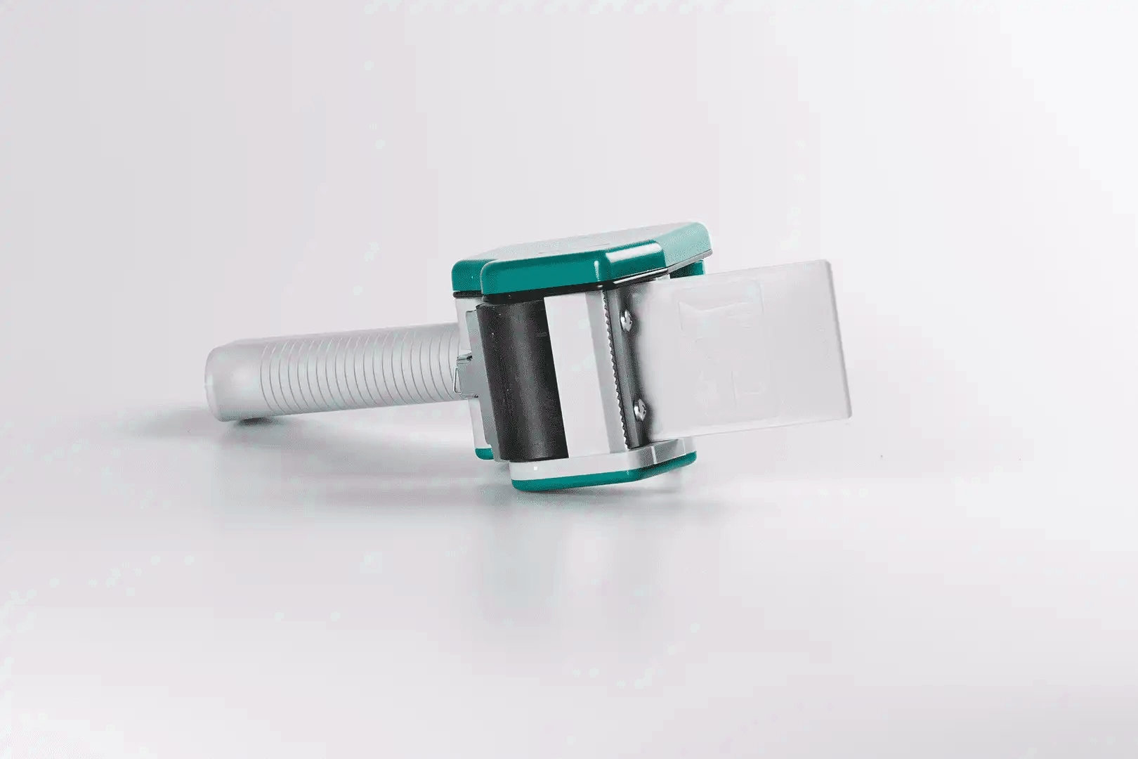 Hartowane, ząbkowane ostrze ze stali nierdzewnej zapewnia czyste, równe cięcie każdej taśmy, a plastikowa osłona zwiększa bezpieczeństwo użytkownika. Pracuj bezpiecznie – bez kompromisów.