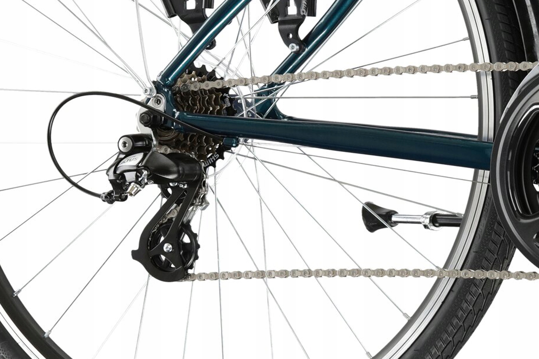 Napęd Shimano o szerokim zakresie 21 przełożeń pozwala z łatwością pokonywać różnorodne tereny, od płaskich ścieżek po lekkie podjazdy. Hamulce v-brake gwarantują skuteczne hamowanie w każdych warunkach pogodowych. Wszechstronne opony Wanda P1024 zapewniają dobrą przyczepność zarówno na suchych, jak i mokrych nawierzchniach, co czyni je idealnym wyborem do jazdy po zróżnicowanym terenie. Dodatkowe wyposażenie, takie jak błotniki, oświetlenie i bagażnik, sprawia, że Sentio 2.0 jest gotowy do działania od razu po wyjęciu z pudełka.