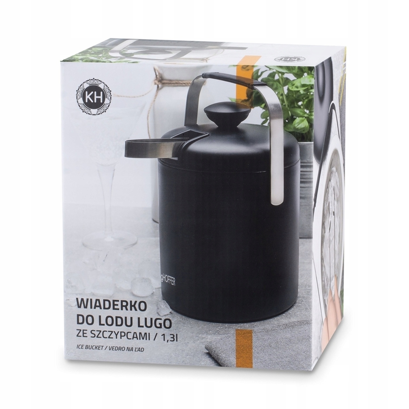 Модель ведра конструированная используя нержавеющий сплав нержавеющей стали и прочный пластик в черном цвете. В этом случае производитель позаботился о дополнении привлекательный дизайн, добавив к нему очень хороший уровень функциональности. Многочасовые поддержание уровня охлаждения, позволяющего хранить кубики в состоянии, дающем возможность легко порция и охлаждение напитков. Ведро продается в комплекте с практичными плоскогубцами на лед.