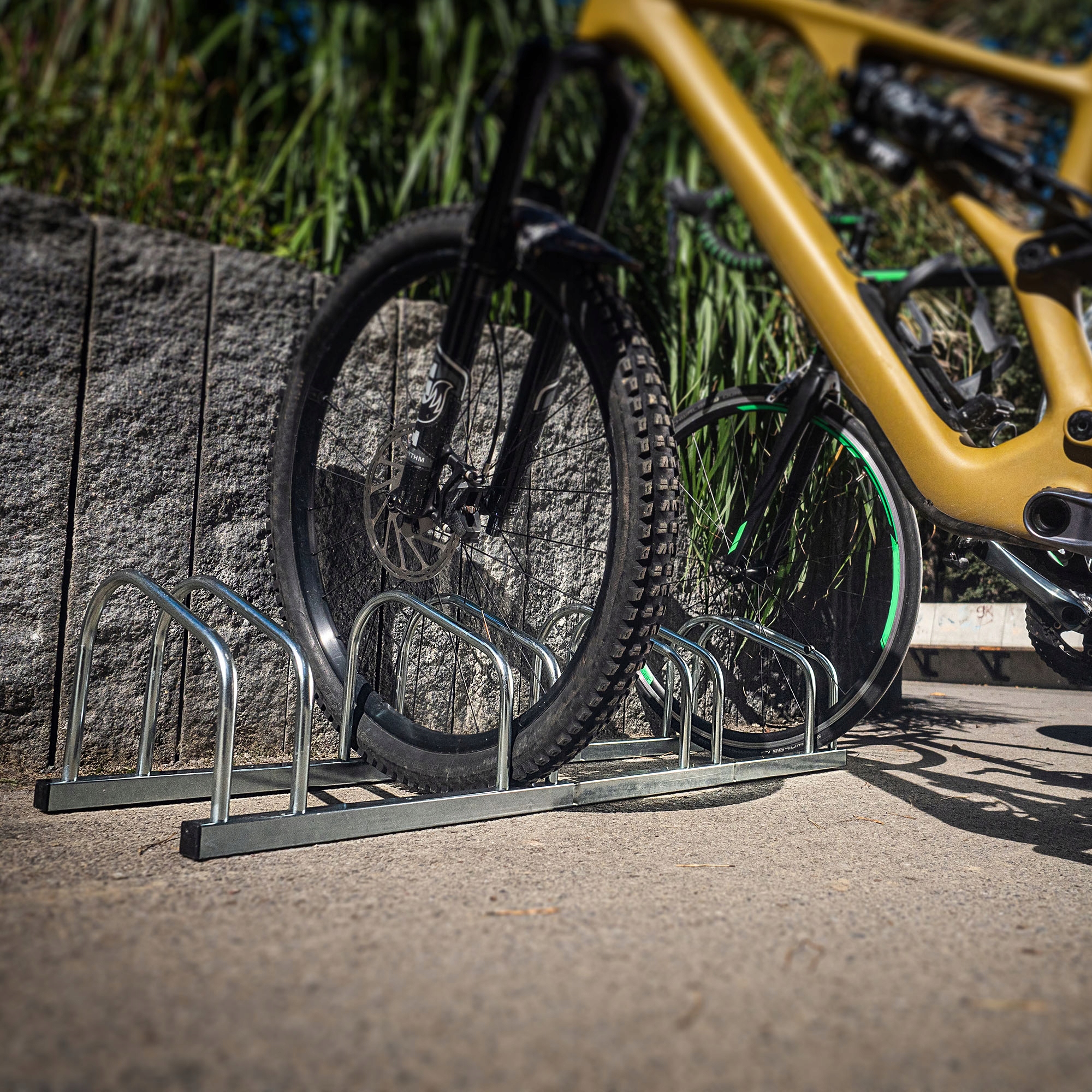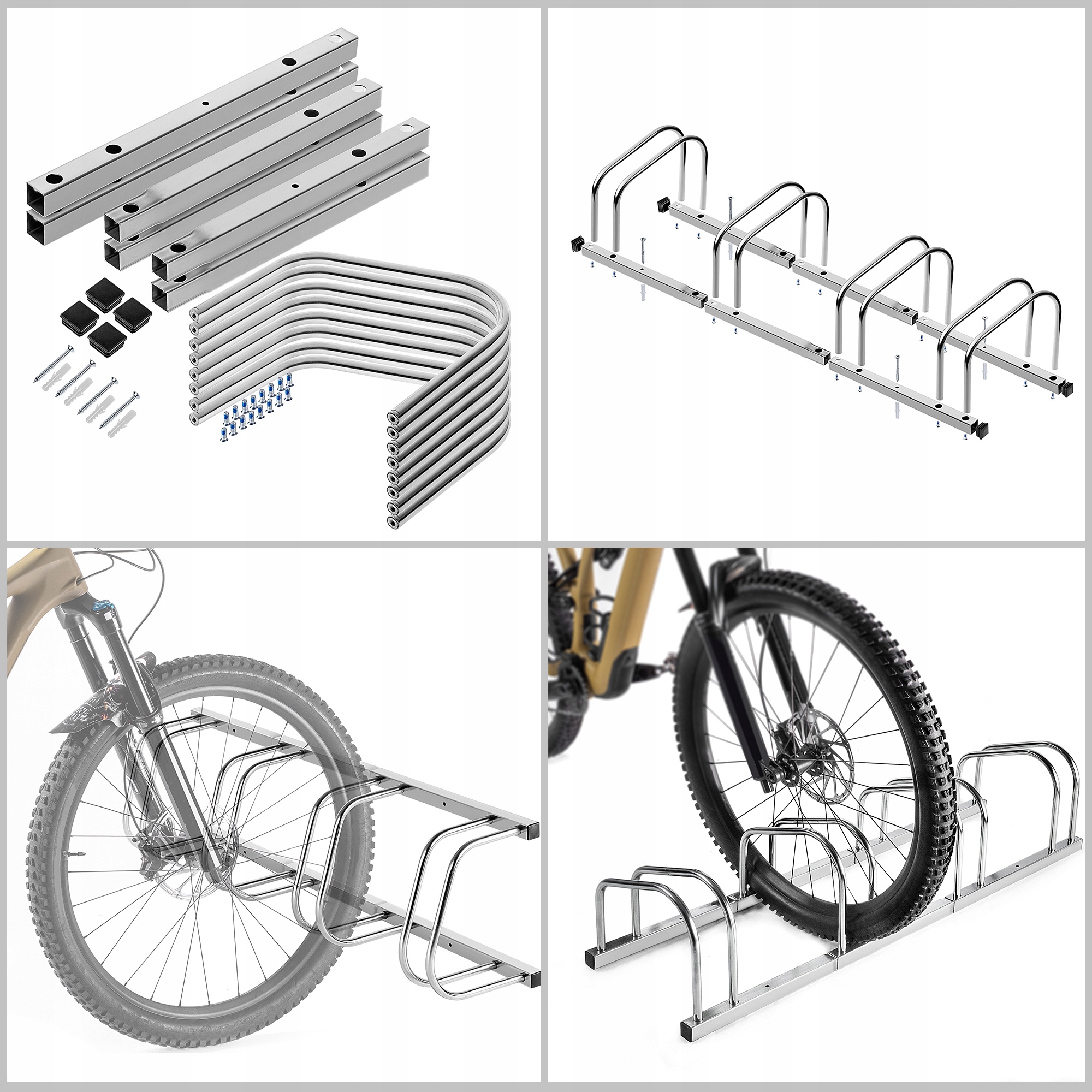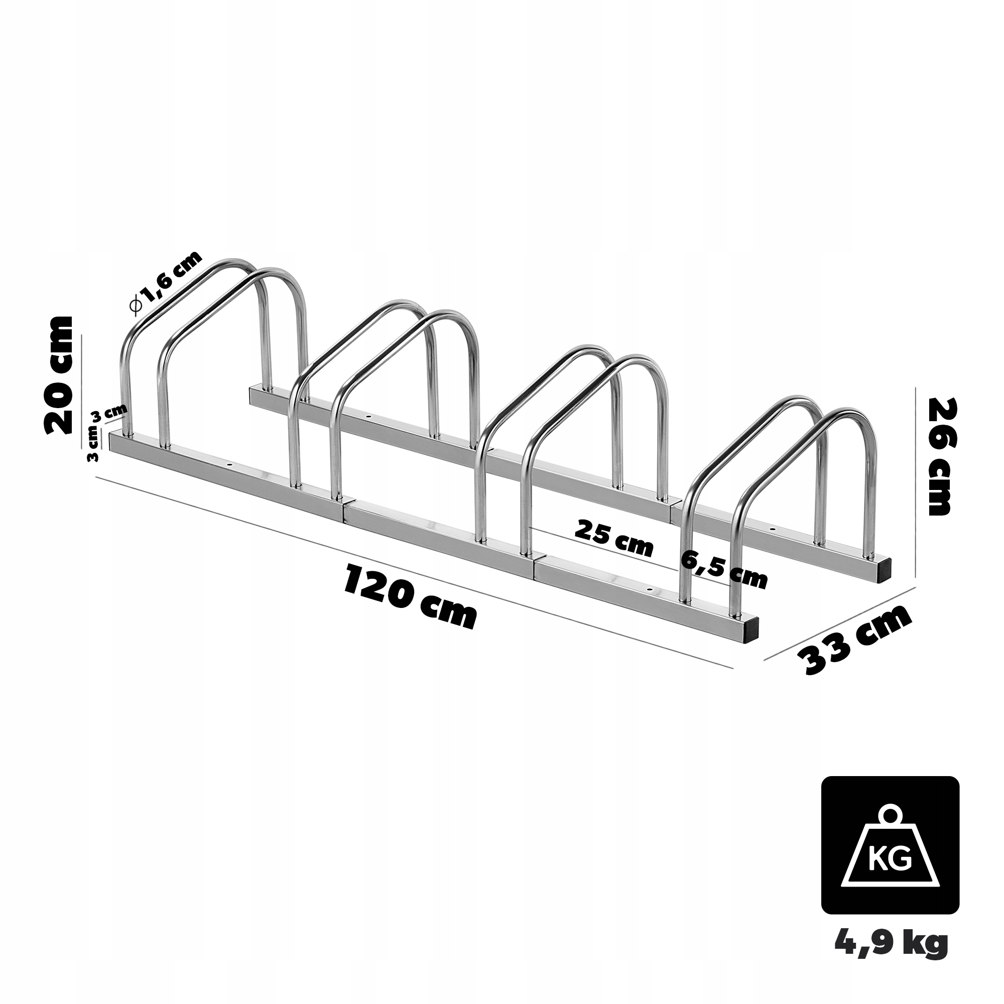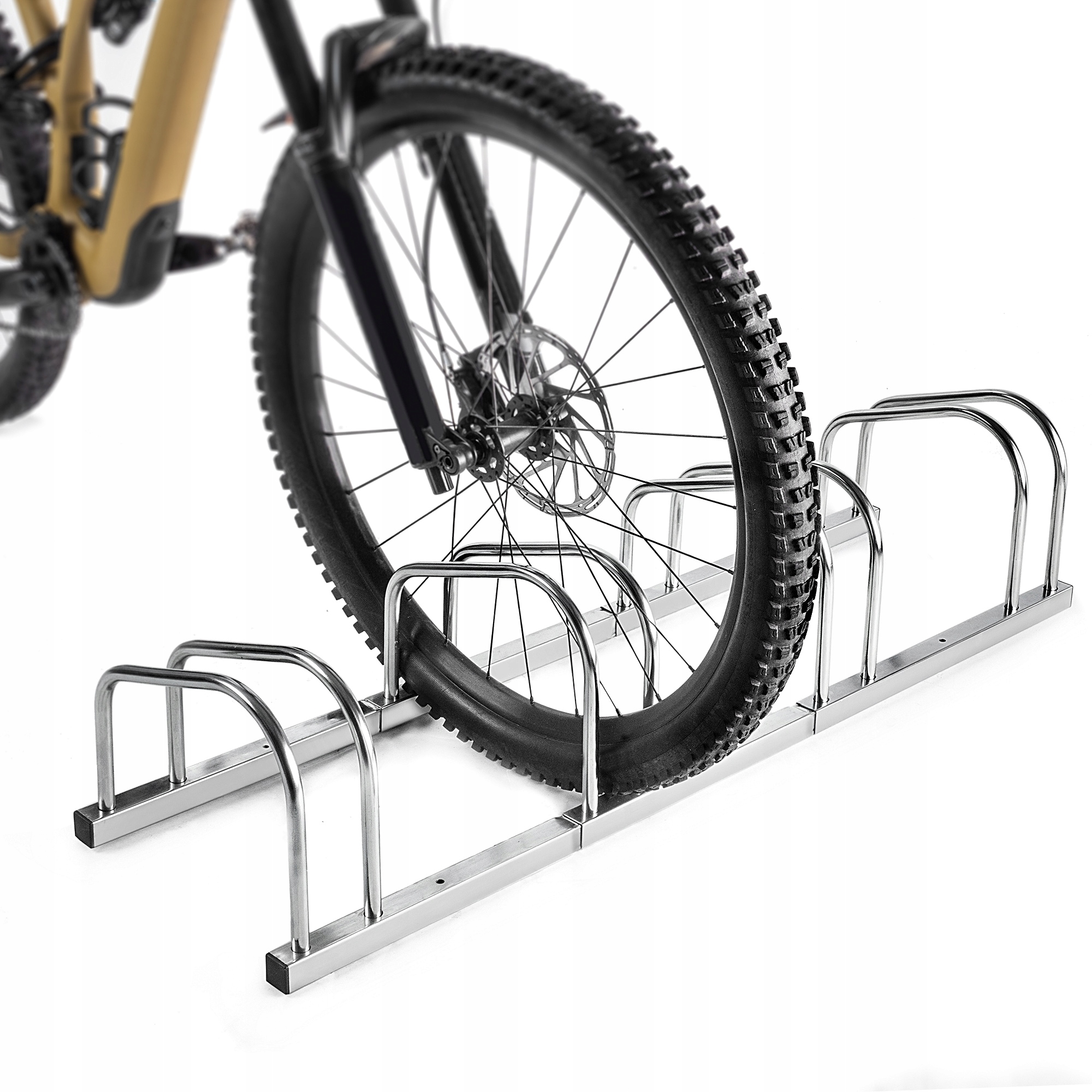 Dostępny w wersji 4- stanowiskowej stojak pozwala na wygodne i uporządkowane przechowywanie kilku rowerów w jednym miejscu.