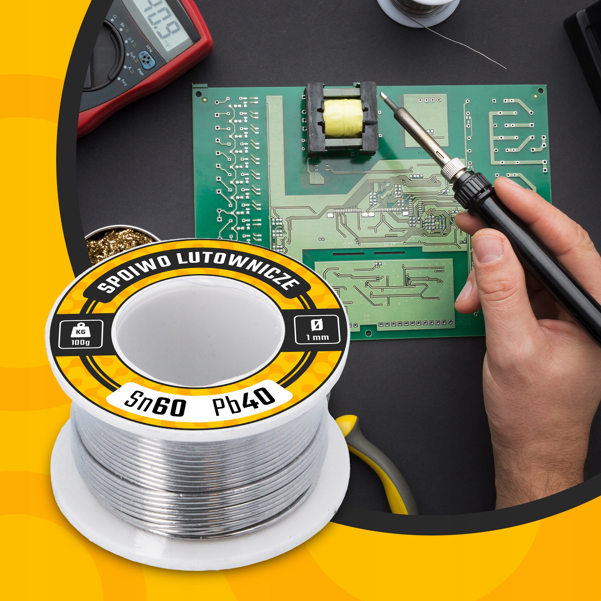 Cyna umożliwia łatwe rozwijanie drutu podczas pracy, co poprawia komfort i oszczędza czas. Niezależnie od doświadczenia, lutowanie staje się prostsze i skuteczniejsze.
