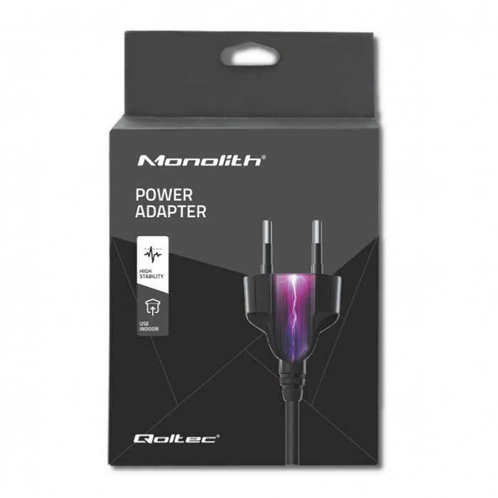 Nowoczesny, o wysokiej sprawności, zasilacz sieciowy Qoltec. Wyposażony w zaawansowane technologie (zabezpieczenia) przeciwprzepięciowe, przeciw przeciążeniowe przeciwzwarciowe i termiczne, jest bezpieczny w użytkowaniu. Cechuje się niskim zużyciem energii i wysoką wydajnością.