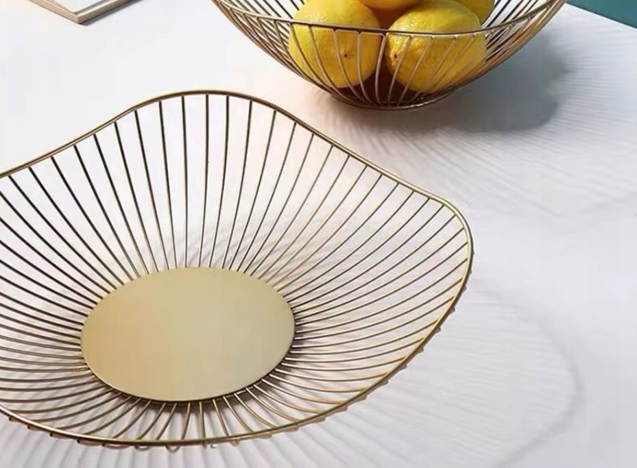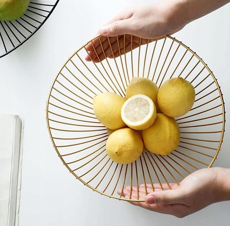 ✅ Koszyk w formie misy wykonany z metalu, malowany proszkowo w kolorze złotym