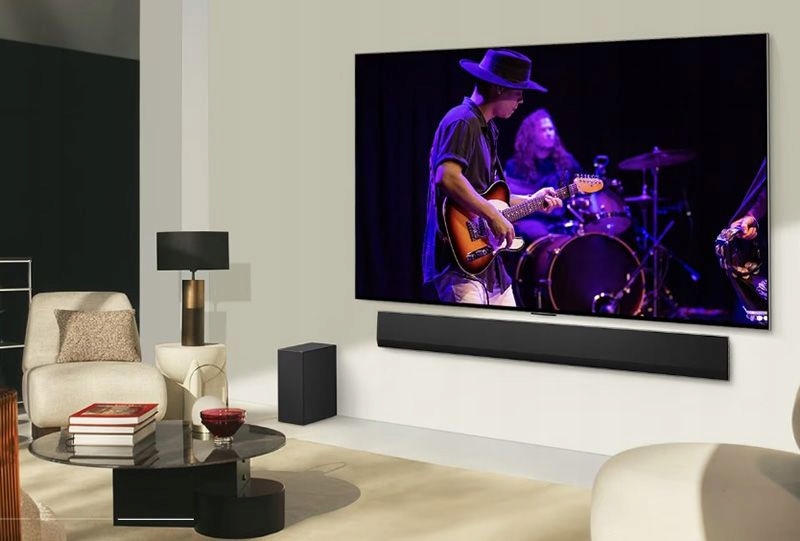 Soundbary LG wzbogacają wrażenia z użytkowania LG TV LG OLED z serii G o spójnym designie Łączy się z LG OLED z serii G Uzupełnij LG OLED G o soundbar, który idealnie do niego pasuje i przylega do ściany jak obraz.