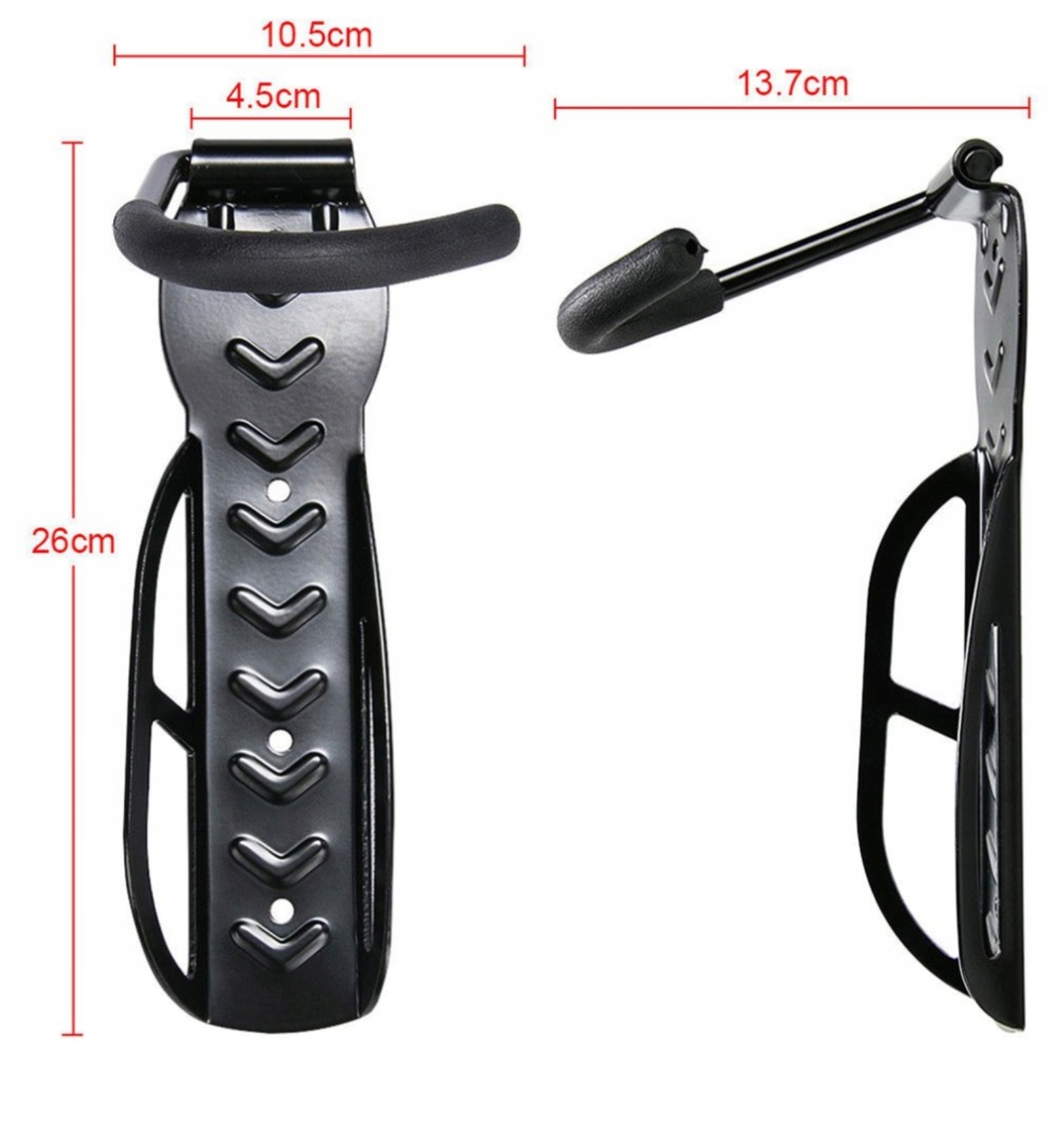 Благодаря креплению к стене держатель чрезвычайно устойчив и прочен. Грузоподъемность до 30 кг нагрузки. Рычаг крюка был покрыт защитным пластиковым покрытием. Нога имеет нескользящая поверхность, чтобы обеспечить полную безопасность оборудования и предотвратить его от соскользнуть.